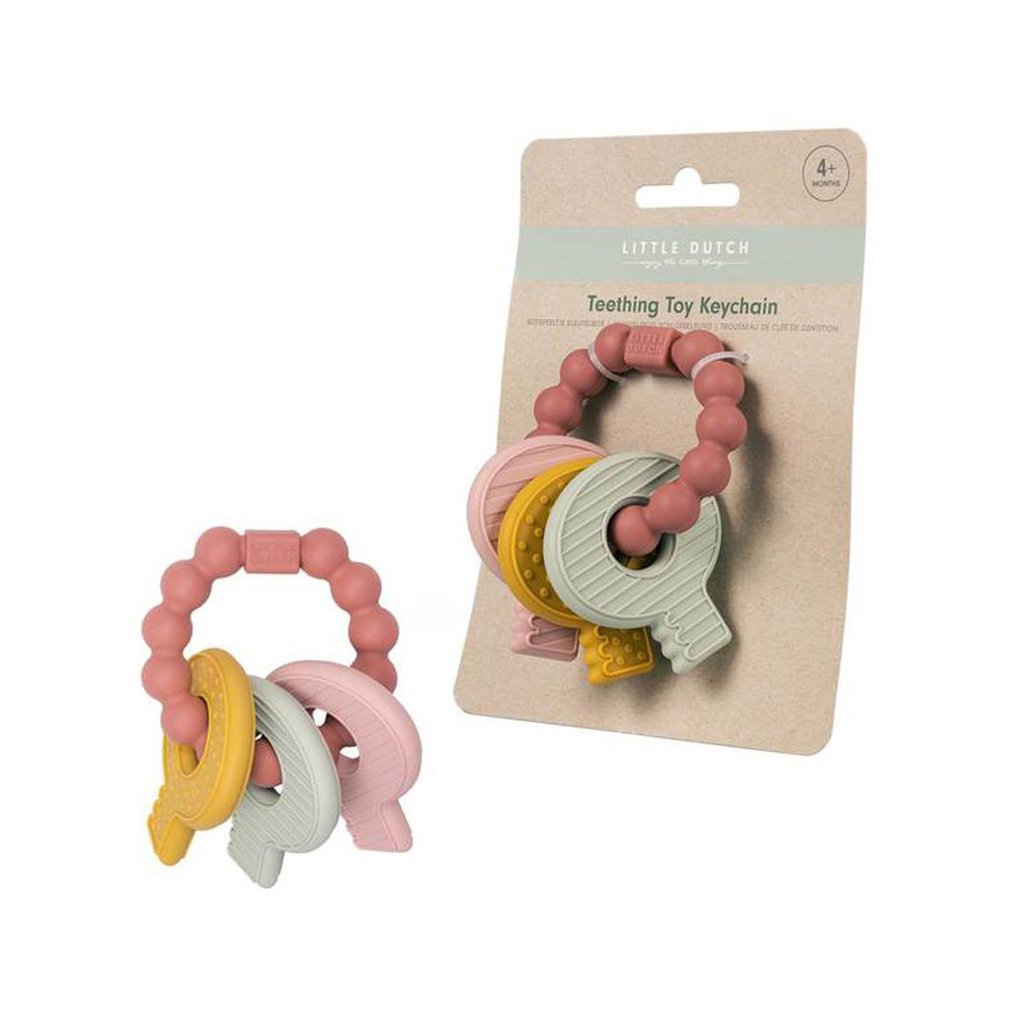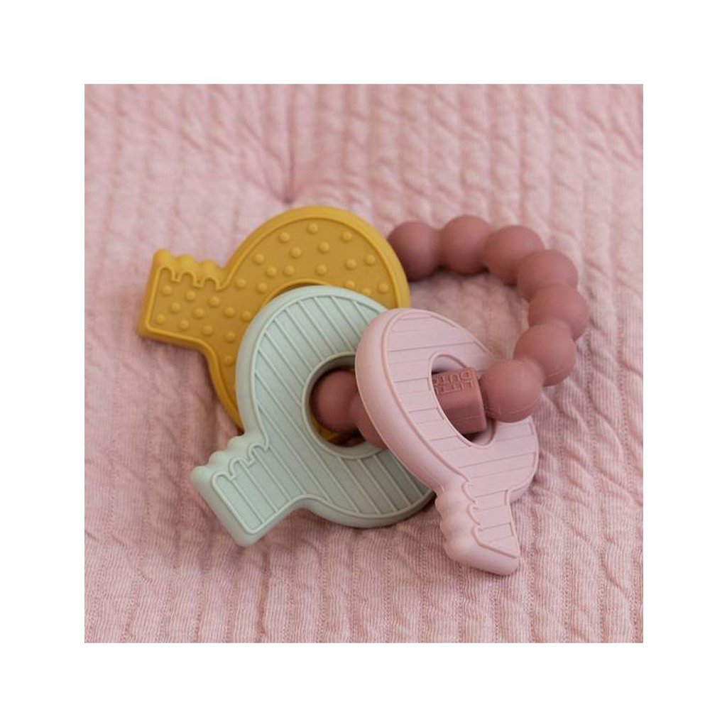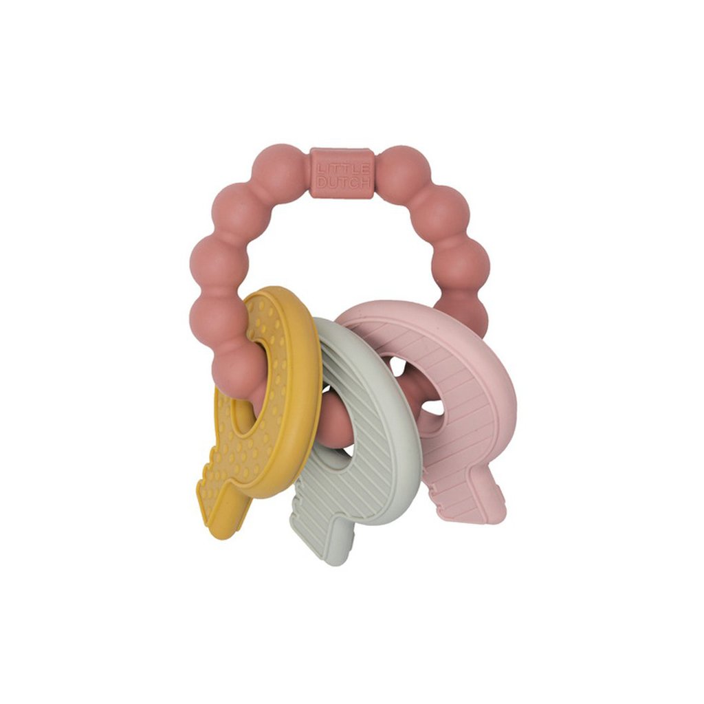 Mäkké silikónové hryzátko s rôznymi textúrami láka dieťa na skúmanie v ústach a pomáha tak pri prerezávaní prvých zúbkov. Hryzátko v podobe kľúčov na krúžku má tvar pre ľahké uchopenie detskými ručičkami.