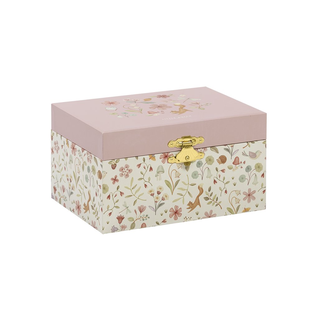 Krásna šperkovnica so zrkadielkom a hudobným boxom, ktorý po natiahnutí hrá nežnú melódiu. Vaša malá parádnica si do šperkovnice s potlačou kvetov môže ukladať svoje šperky a iné vzácne drobnosti.
