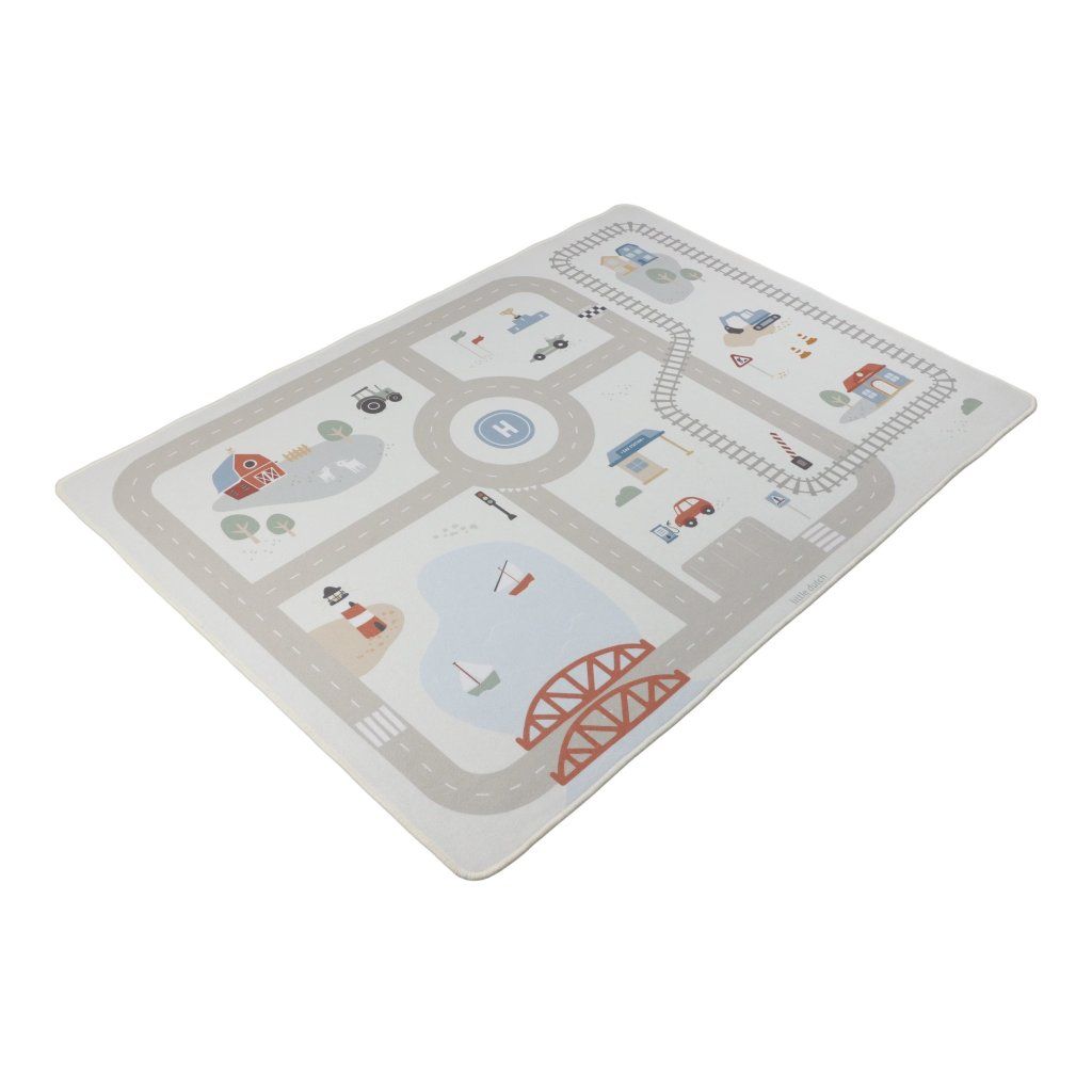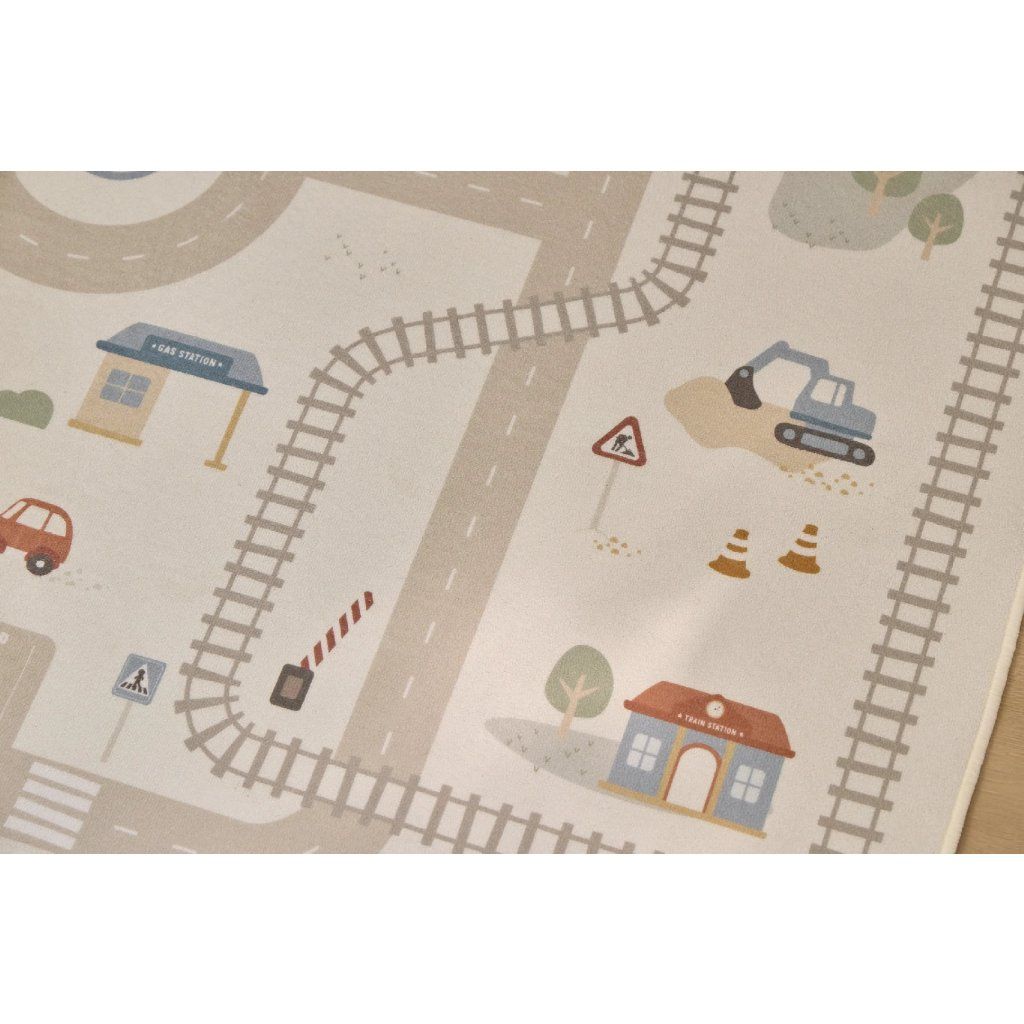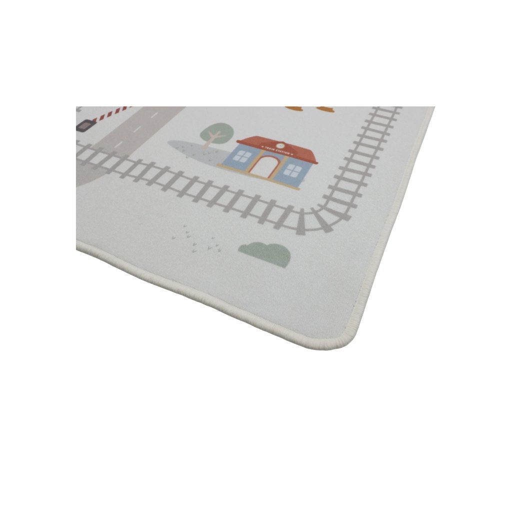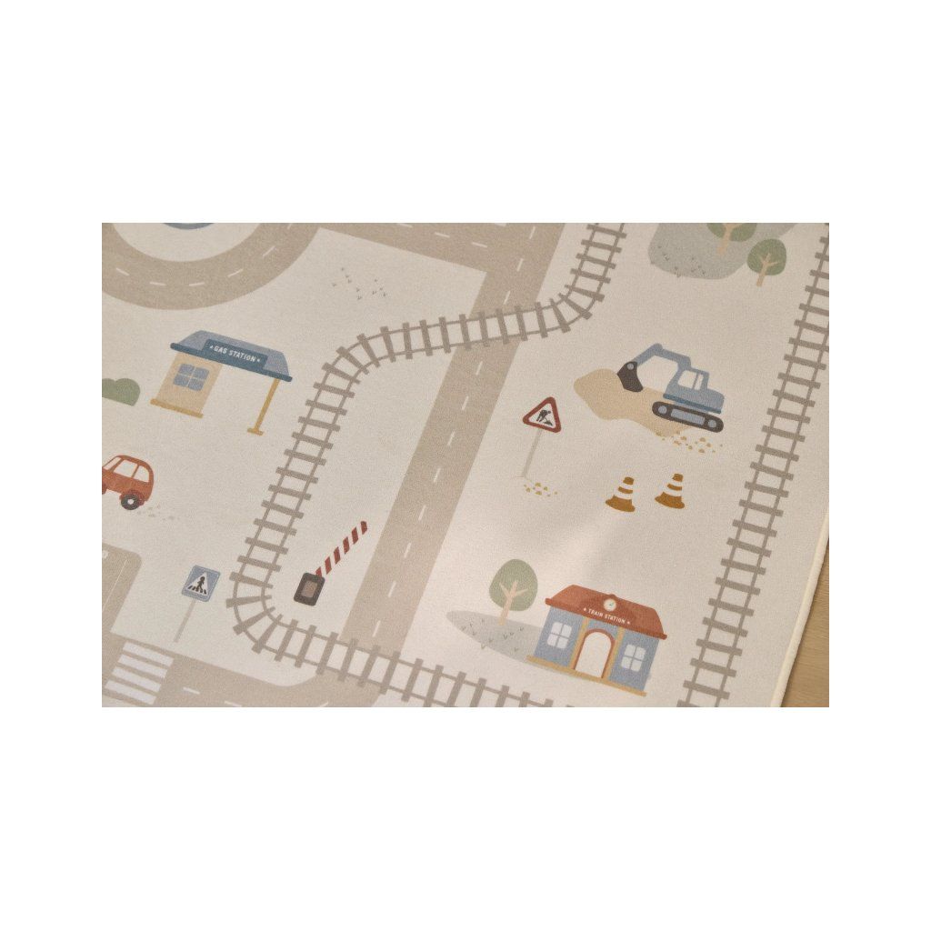 Detský koberec Little Dutch premení podlahu v detskej izbe na živý svet plný ciest, zákrut a križovatiek, kde sa príbehy tvoria samé. Deti môžu parkovať autá do garáže, prechádzať mestom alebo sa vydať na cestu vlakom – dizajn koberca ich prirodzene vedie a podporuje fantáziu aj sústredenú hru. Koberec bude skvelým doplnkom pri hraní s autíčkami, vláčikmi, stavebnicami alebo ďalšími hračkami.