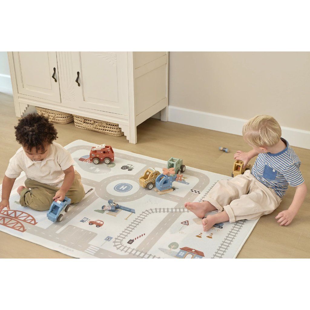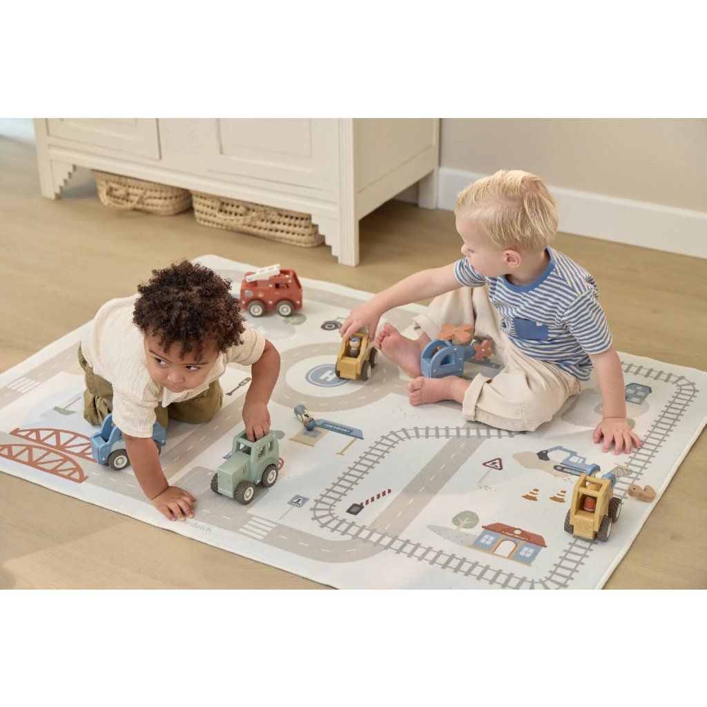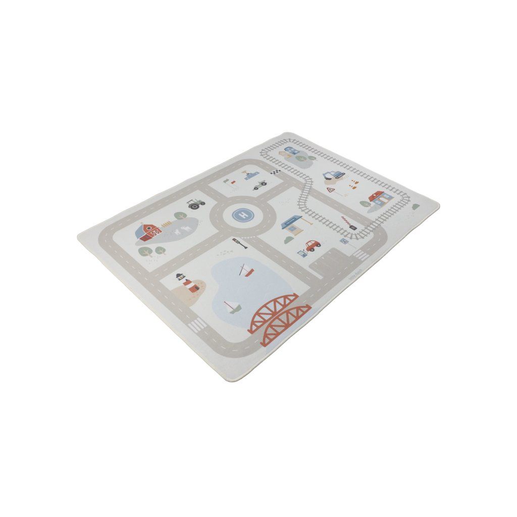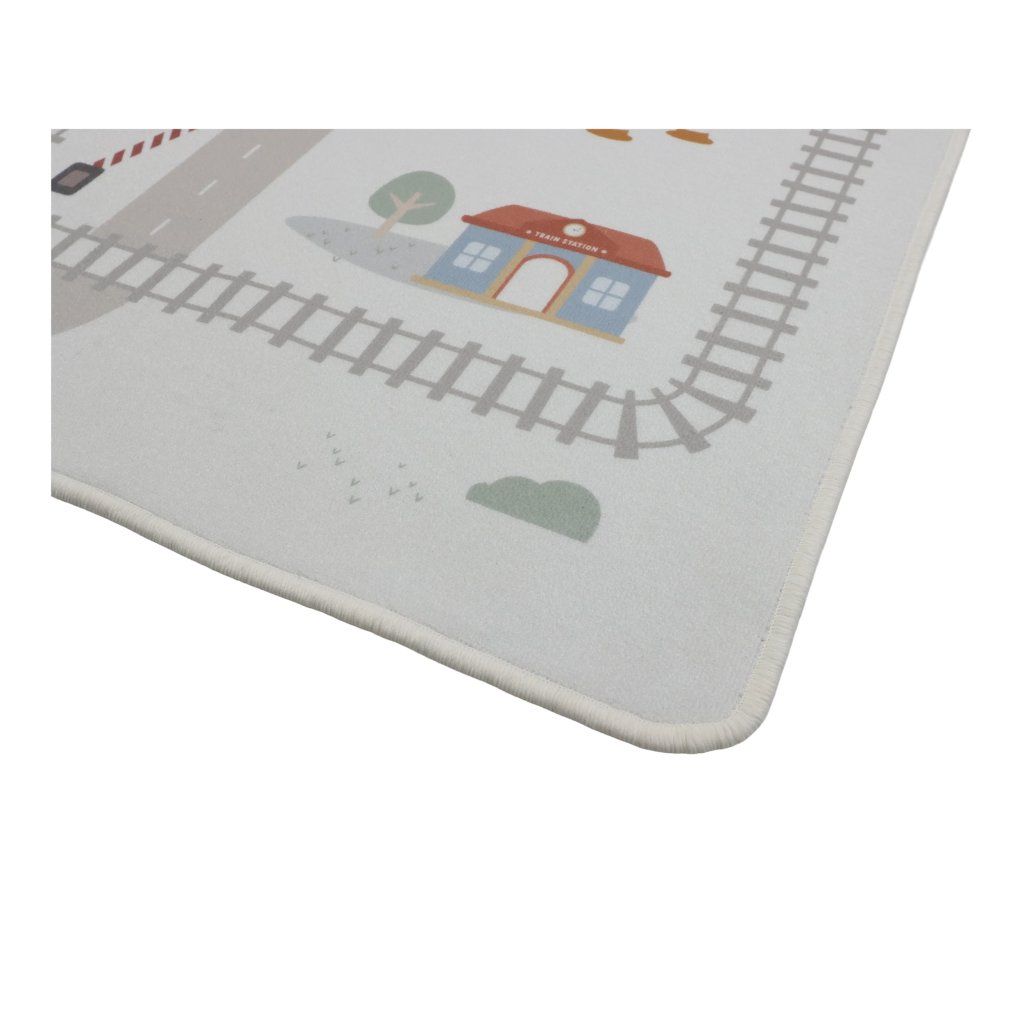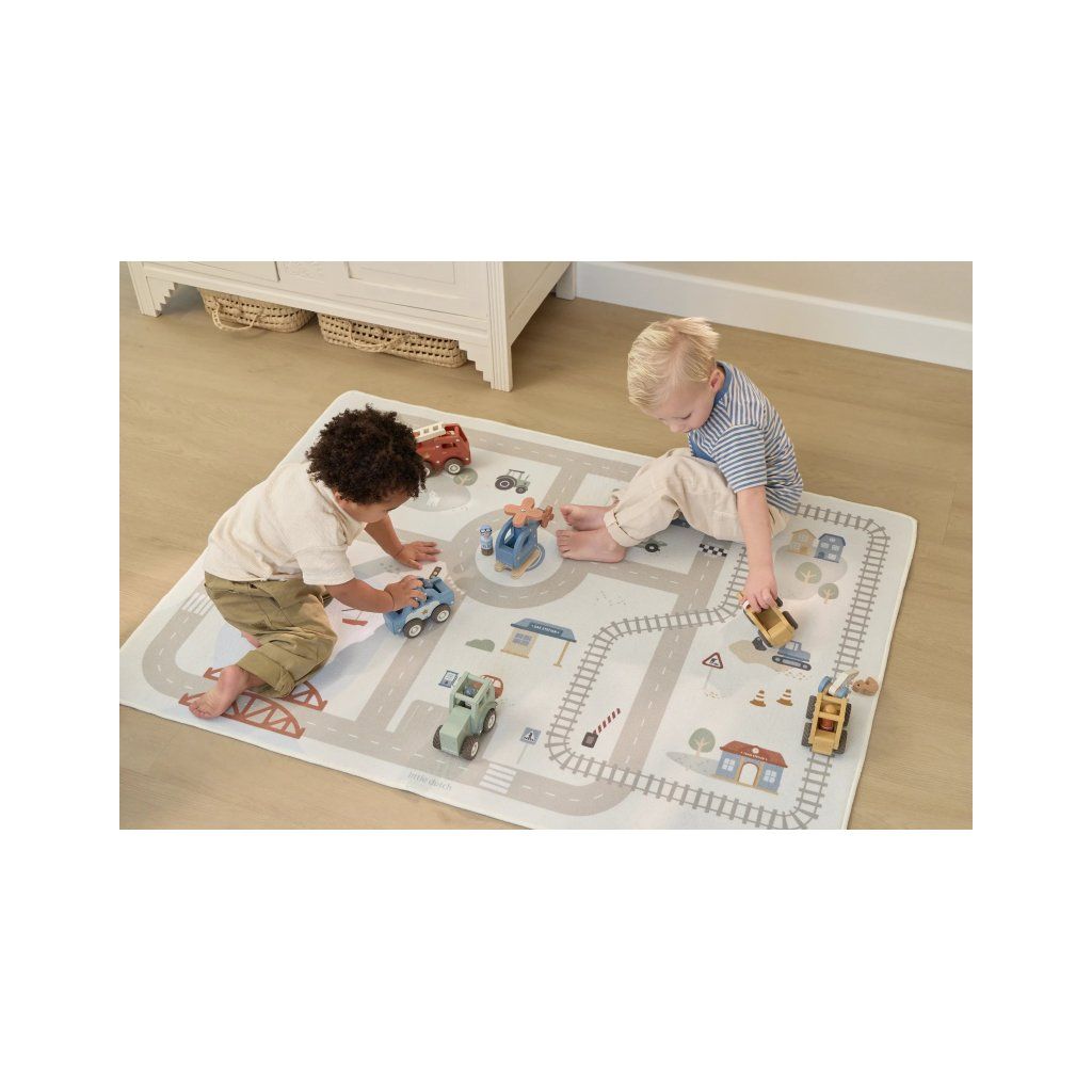 Detský koberec Little Dutch premení podlahu v detskej izbe na živý svet plný ciest, zákrut a križovatiek, kde sa príbehy tvoria samé. Deti môžu parkovať autá do garáže, prechádzať mestom alebo sa vydať na cestu vlakom – dizajn koberca ich prirodzene vedie a podporuje fantáziu aj sústredenú hru. Koberec bude skvelým doplnkom pri hraní s autíčkami, vláčikmi, stavebnicami alebo ďalšími hračkami.