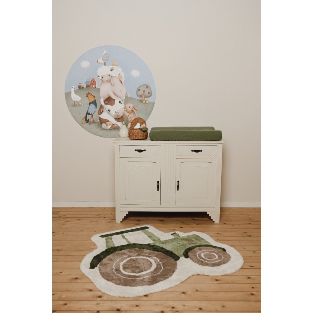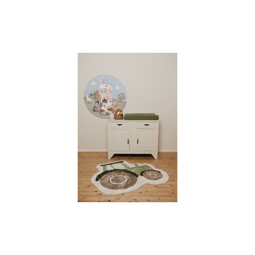 Vytvorte v detskej izbe útulnú atmosféru s koberčekom od značky Little Dutch! Koberček v tvare traktora má jemný béžový podklad a motív zeleno-hnedého traktora. Jeho hravý dizajn vnesie do miestnosti príjemnú a útulnú náladu a vášmu dieťaťu sa na ňom bude krásne sedieť a hrať sa.