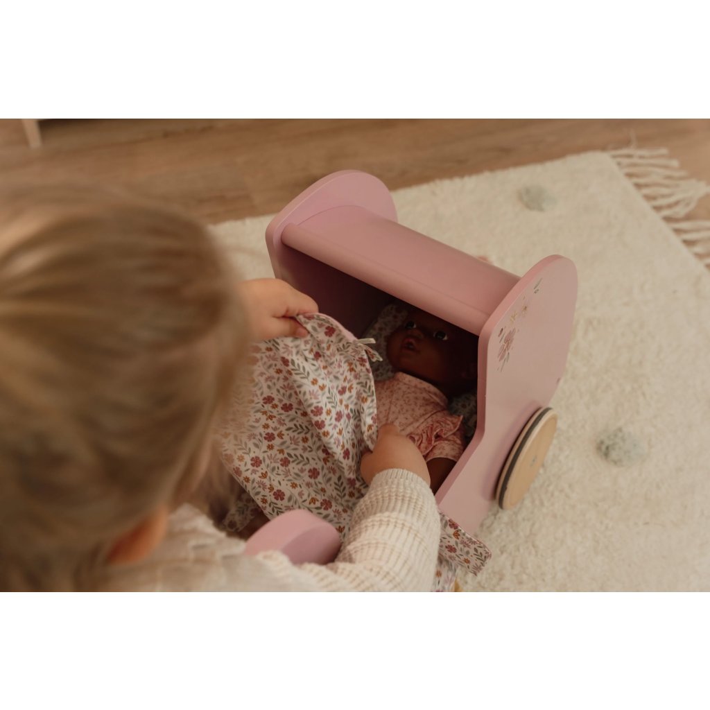 Little Dutch Kočík pre bábiky drevený s perinkou Pink
