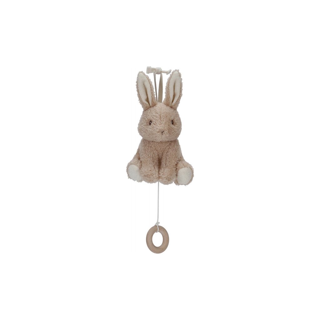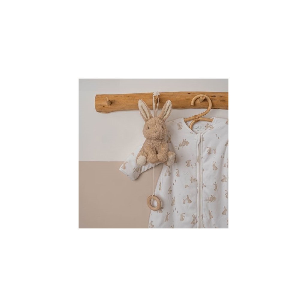 Závesná hračka v podobe roztomilého zajačika v sebe skrýva naťahovací hudobný box s príjemnou uspávankou, ktorá vaše bábätko upokojí a pomôže mu zaspať. Hračku ľahko pripevníte k postieľke či komode.