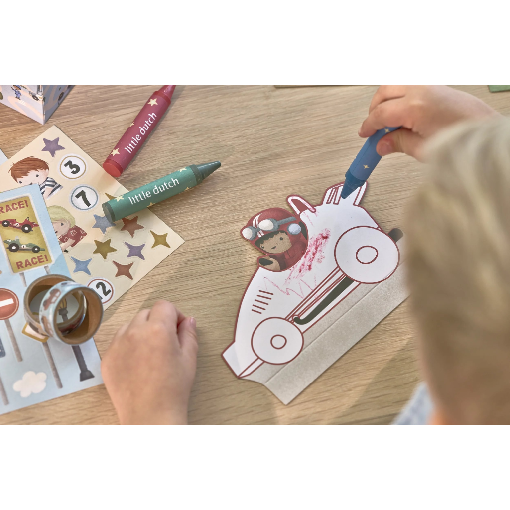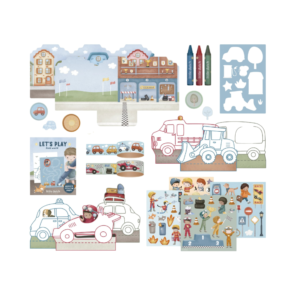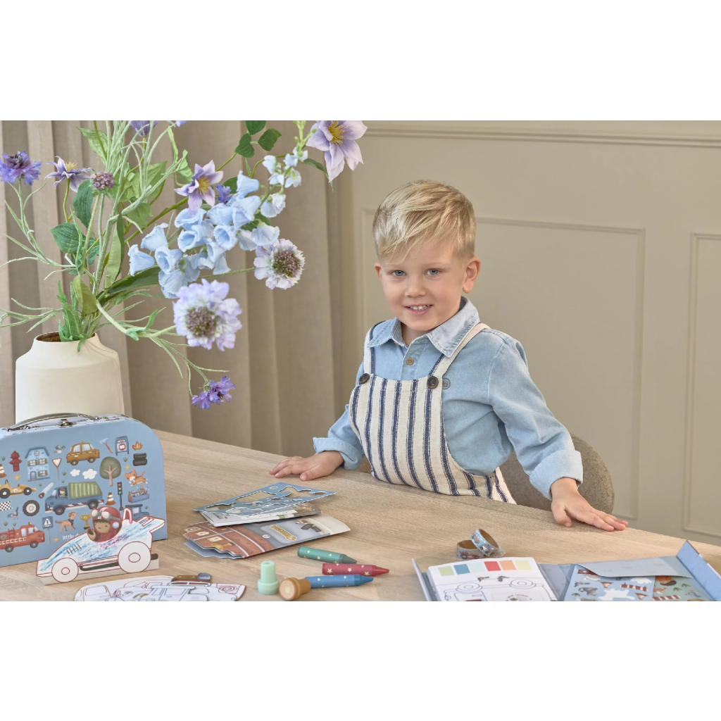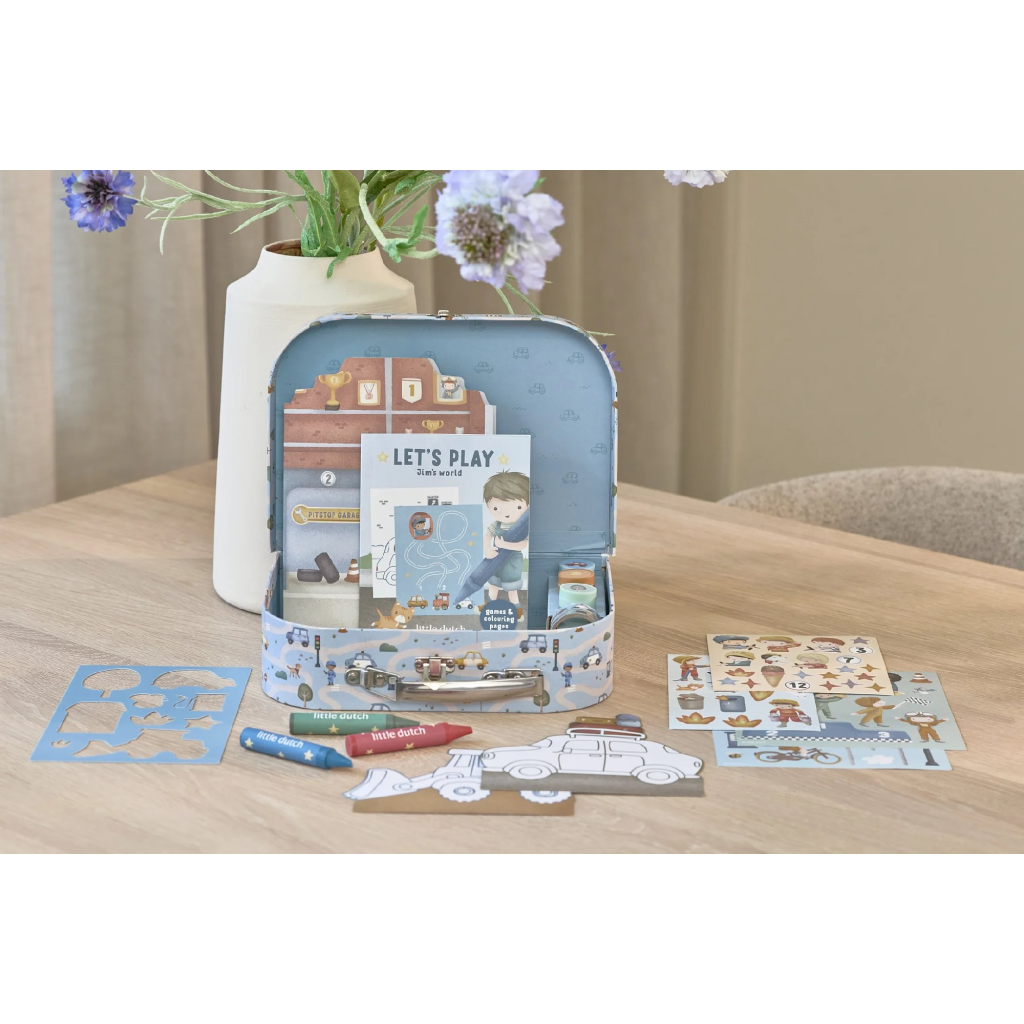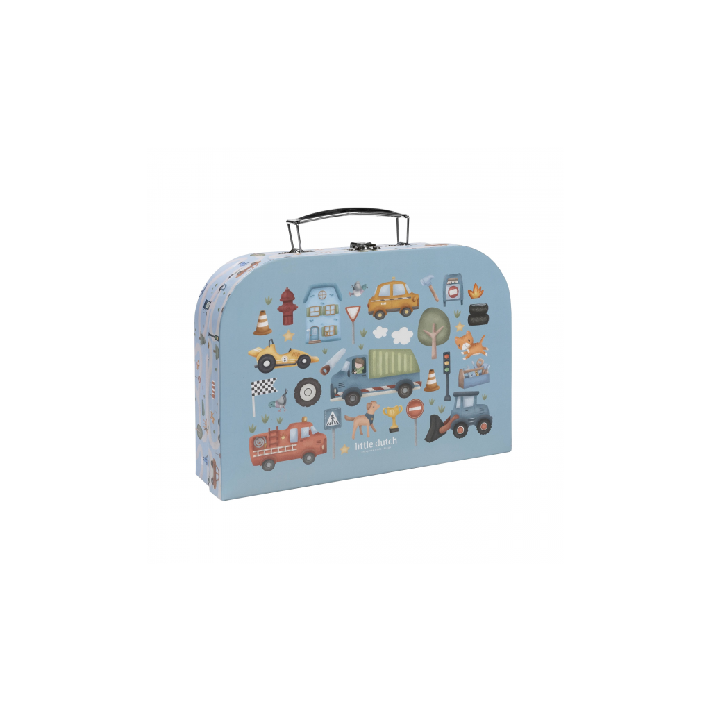 Veľká kreatívna súprava obsahuje potreby pre rôzne druhy výtvarného tvorenia vrátane pasteliek, samolepiek, pečiatok a pod. Motívy zo života v meste, rôzne dopravné prostriedky a profesie, to všetko nabáda k vymýšľaniu príbehov a kreatívnemu tvoreniu. Všetko je zabalené v krásnom kufríku, do ktorého všetko po skončení hry ľahko upracete.