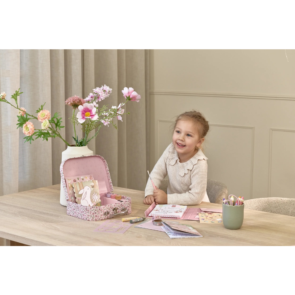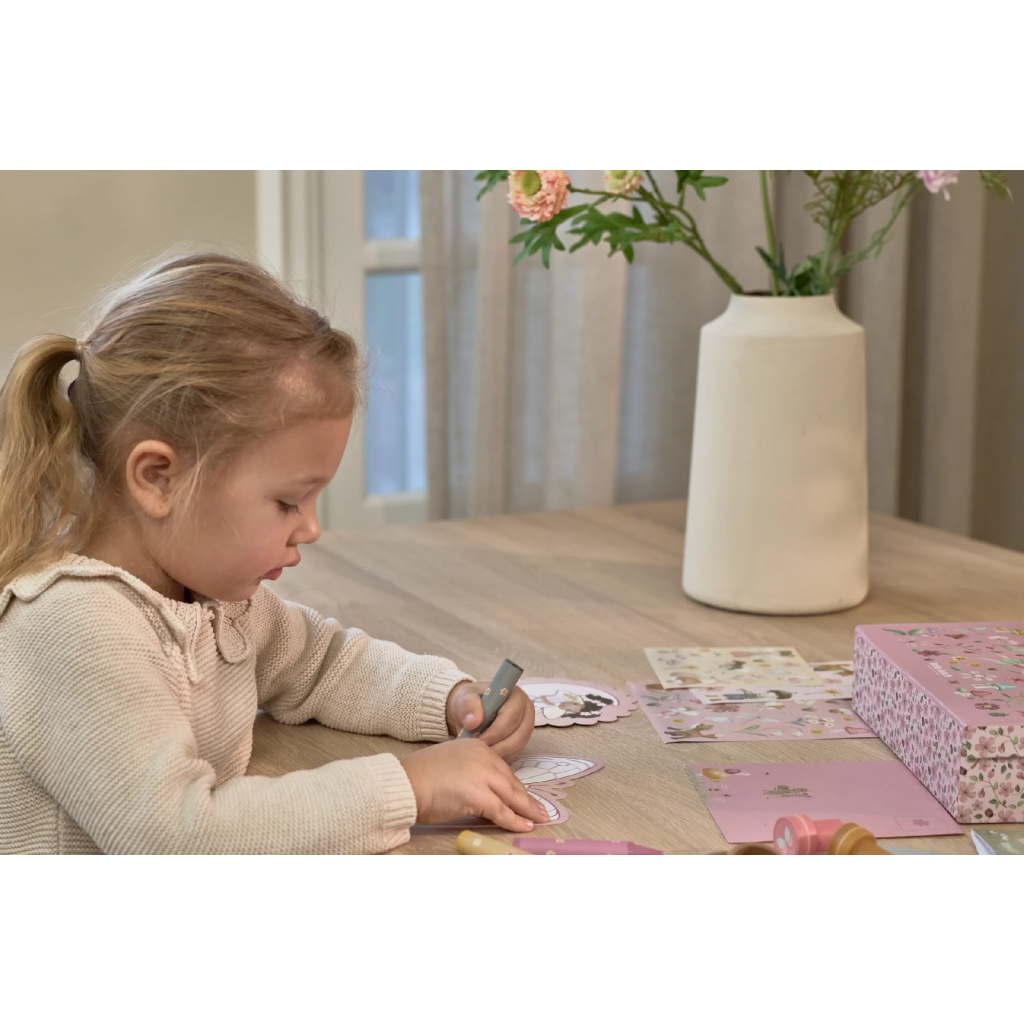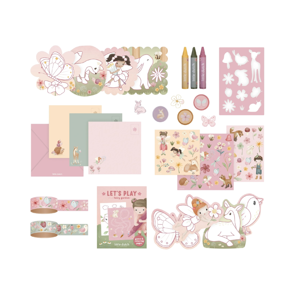 Veľká kreatívna súprava obsahuje potreby pre rôzne druhy výtvarného tvorenia vrátane pasteliek, samolepiek, pečiatok a pod. Motívy zo života rozprávkovej víly, zvieratká a kvety, to všetko nabáda k vymýšľaniu príbehov a kreatívnemu tvoreniu. Všetko je zabalené v krásnom kufríku, do ktorého všetko po skončení hry ľahko upracete.