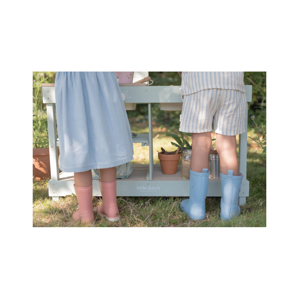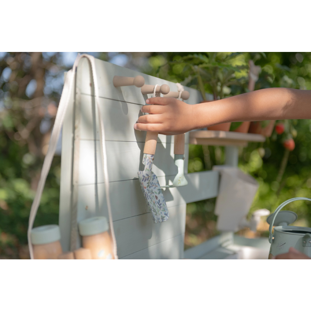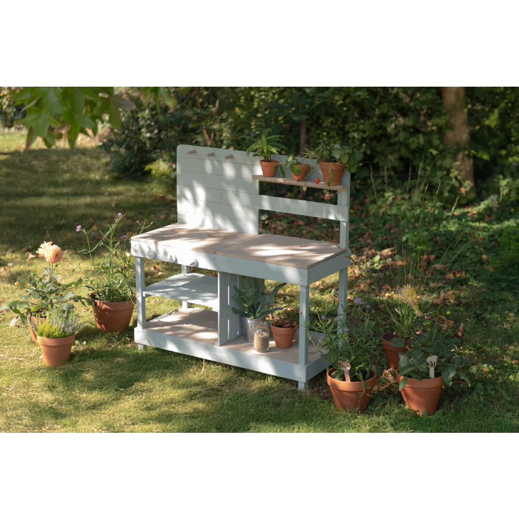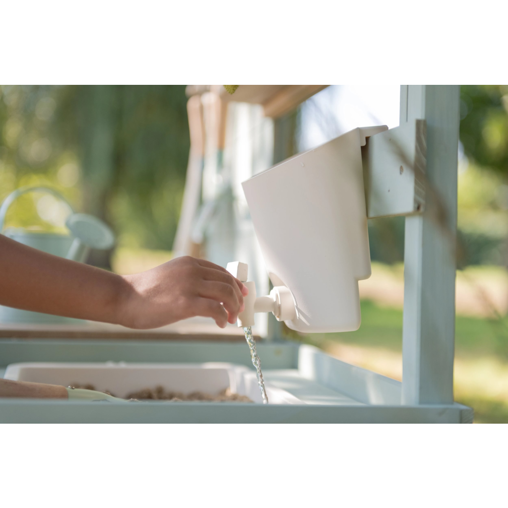 Okrem hry na varenie je kuchynka skvelá aj ako praktický pult pre malých záhradníkov, na ktorom môžu napr. sadiť kvety aj siet semienka do kvetináčov, zalievať ich a po skončení umyť všetko záhradnícke náčinie vodou, aby bolo pripravené na budúce záhradnícke aktivity.