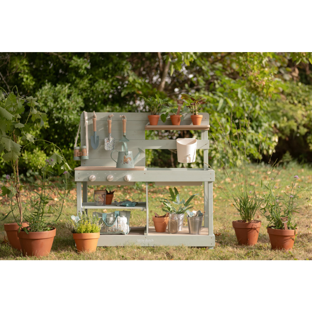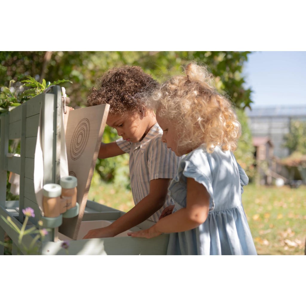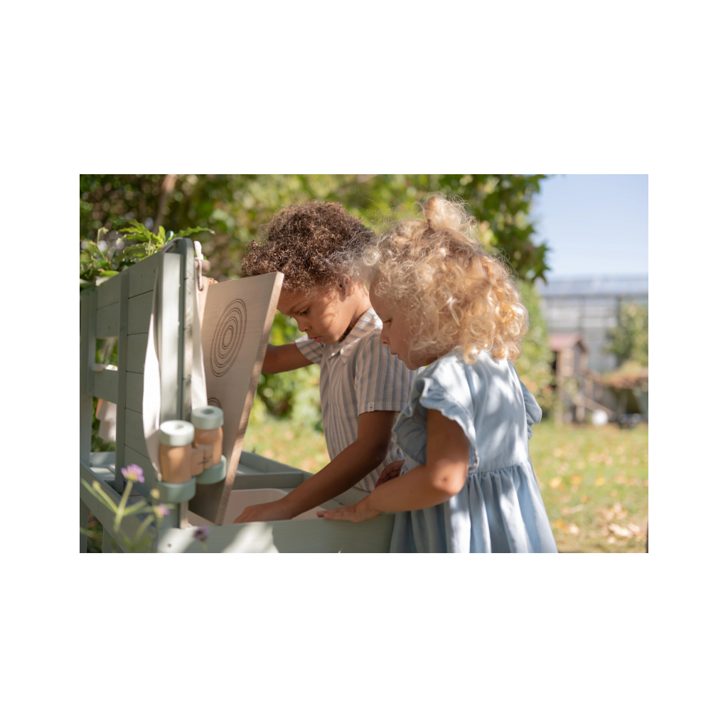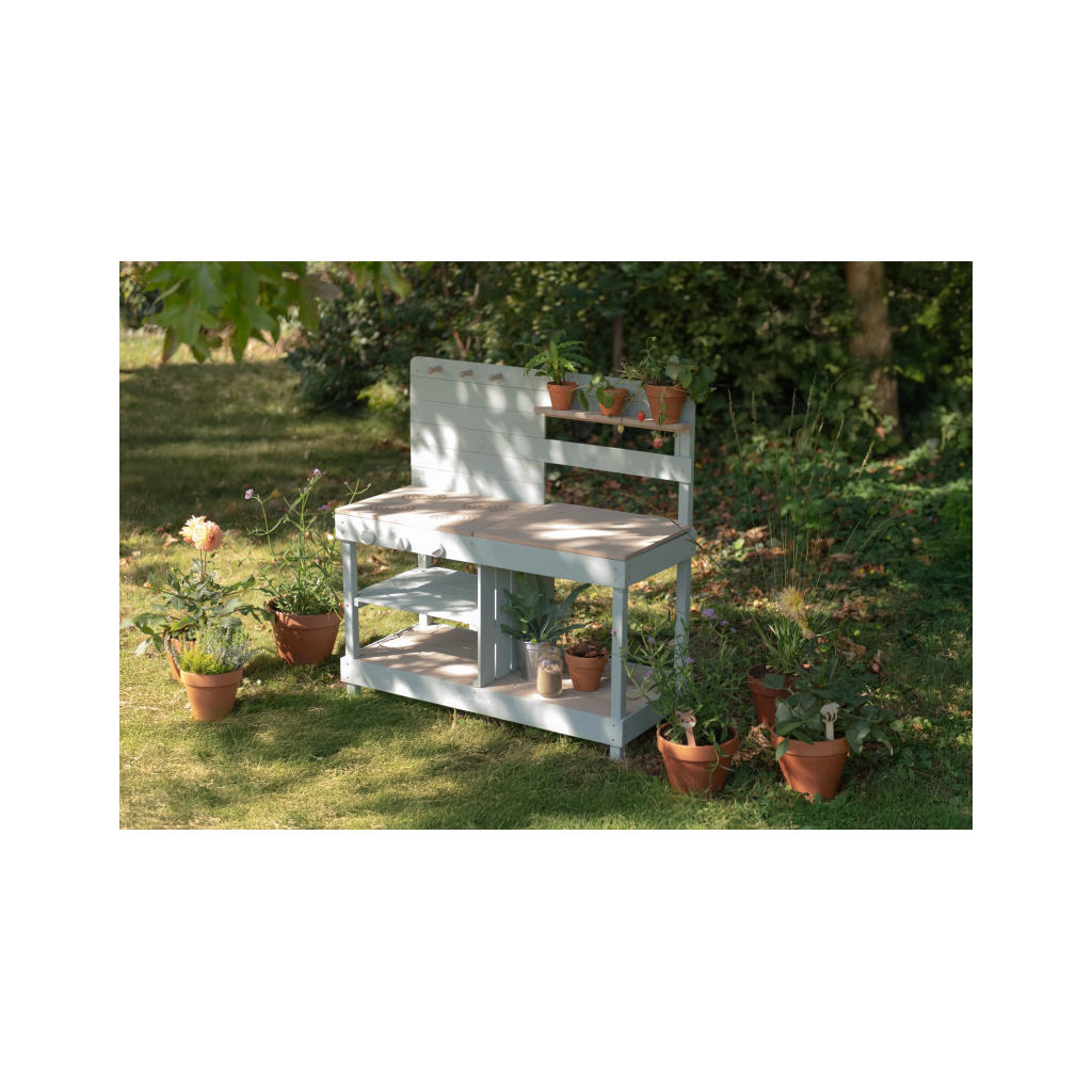 Okrem hry na varenie je kuchynka skvelá aj ako praktický pult pre malých záhradníkov, na ktorom môžu napr. sadiť kvety aj siet semienka do kvetináčov, zalievať ich a po skončení umyť všetko záhradnícke náčinie vodou, aby bolo pripravené na budúce záhradnícke aktivity.