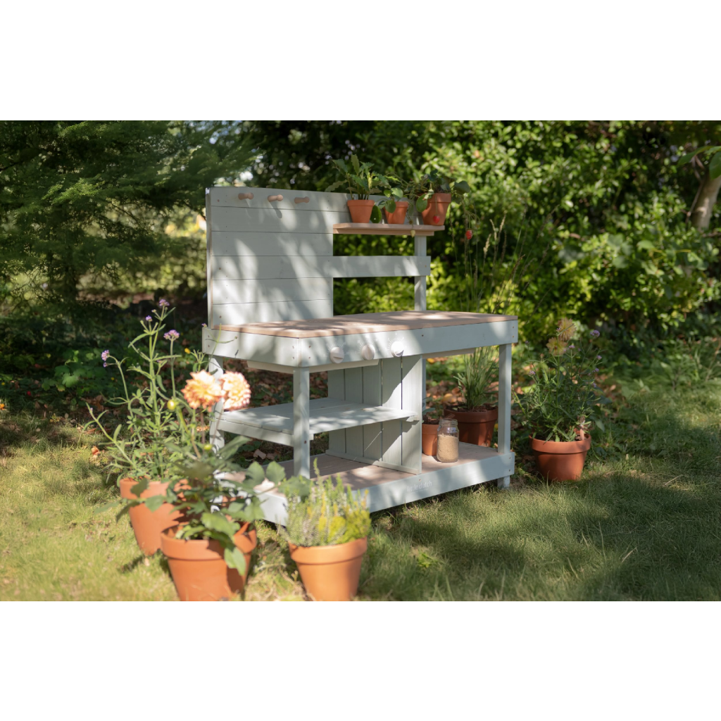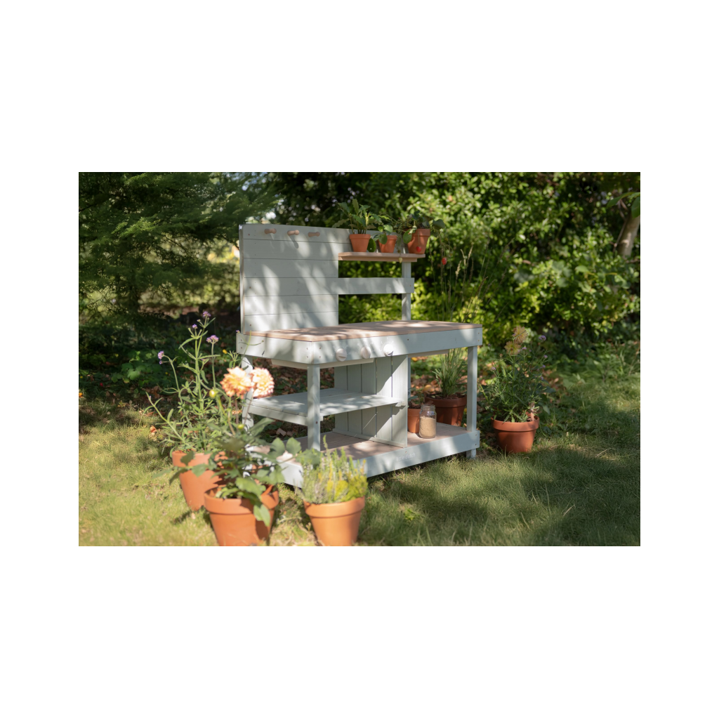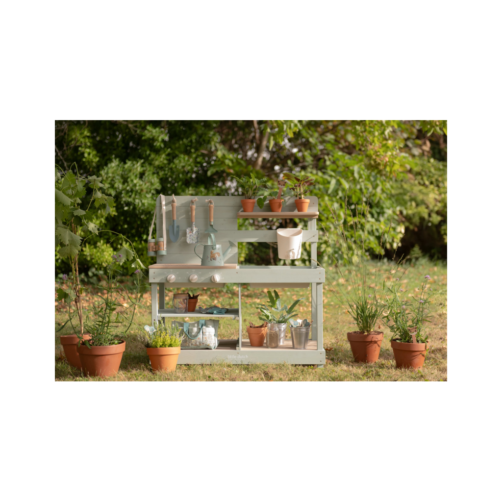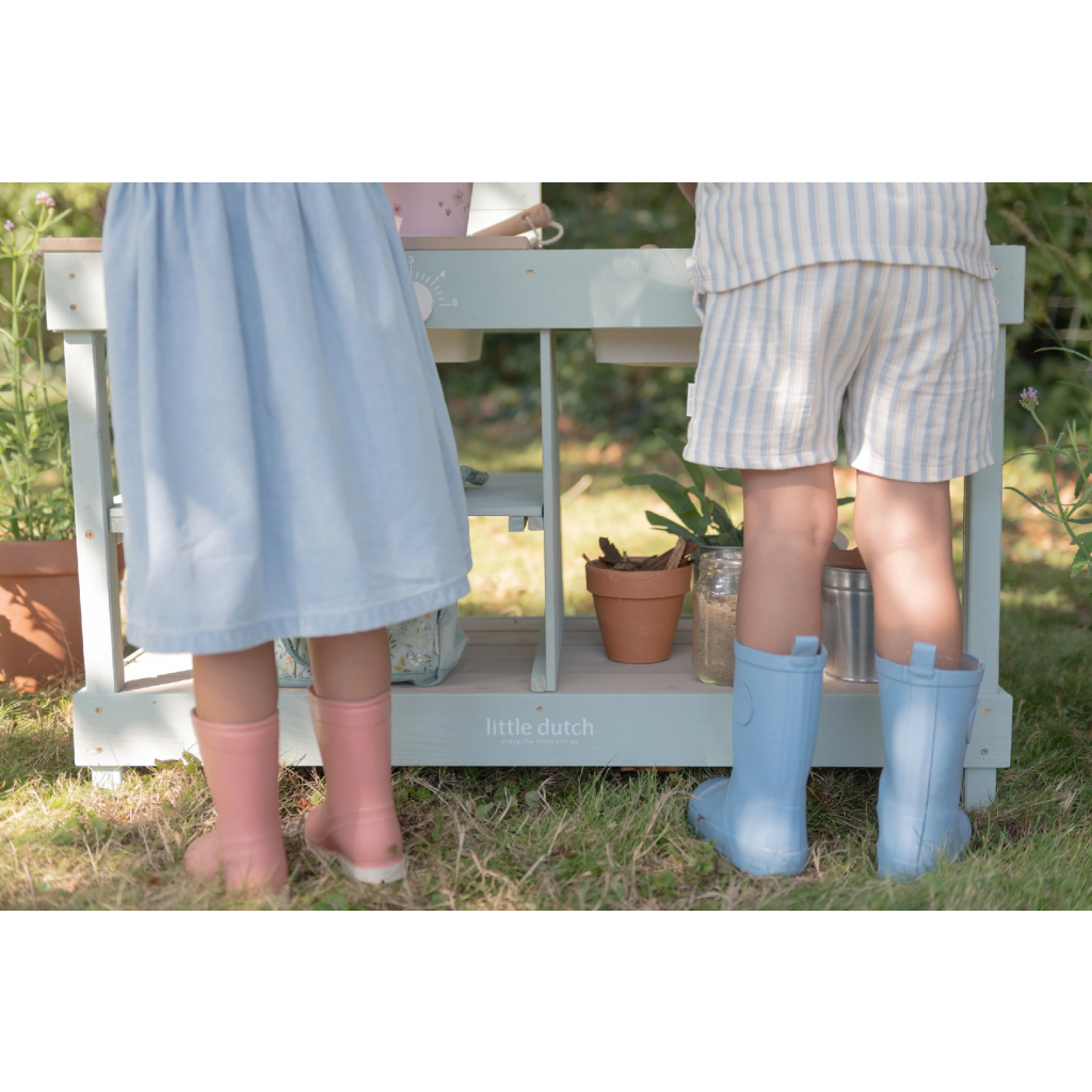 Okrem hry na varenie je kuchynka skvelá aj ako praktický pult pre malých záhradníkov, na ktorom môžu napr. sadiť kvety aj siet semienka do kvetináčov, zalievať ich a po skončení umyť všetko záhradnícke náčinie vodou, aby bolo pripravené na budúce záhradnícke aktivity.