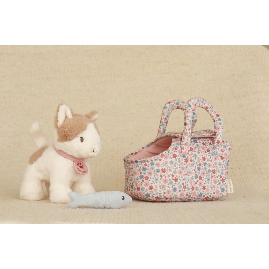 Mačička prichádza v elegantnej kvetovanej taške s predným otvorom, aby mohla zvedavo vykukovať von. Vďaka tomu si ju deti môžu vziať kamkoľvek – na prechádzku, na výlet, do škôlky alebo napríklad k starým rodičom. Na krku má prívesok so svojim menom. Plyšová rybka na hranie má vo vnútri magnet, takže drží mačičke pri papuľke.