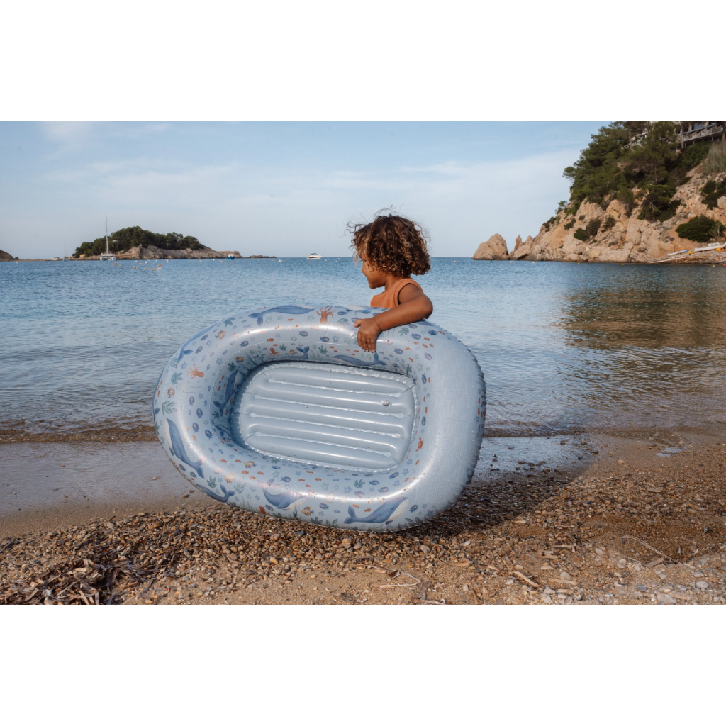 Nafukovací čln do vody s krásnou potlačou motívov zo života na mori. Čln ľahko nafúknete a keď ho práve nepoužívate, ľahko ho vypustíte a zložíte do kompaktného tvaru.