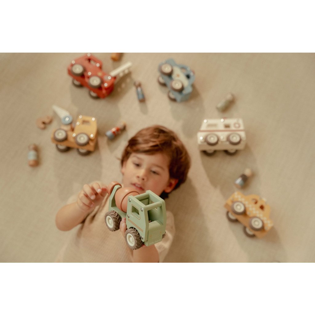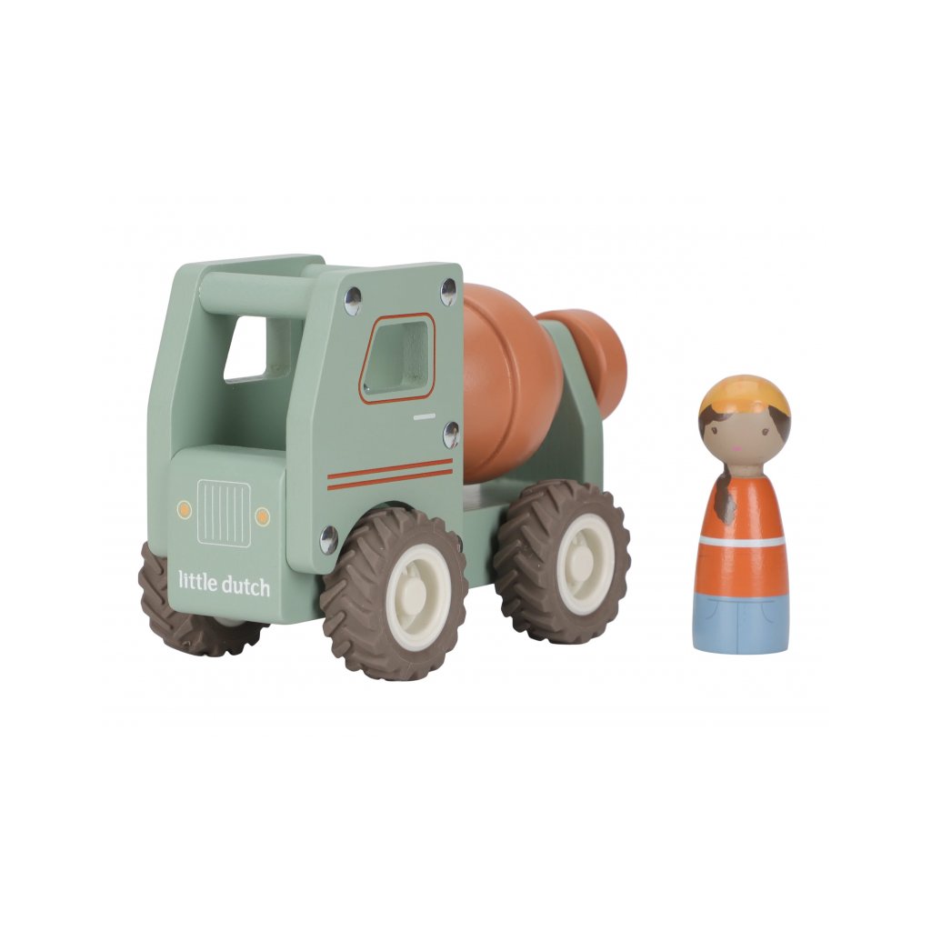 Súčasťou hračky je drevená figúrka stavbyvedúceho, ktorá dodá hre ešte viac zábavy a realizmu.Miešačku môžete kombinovať s ďalšími stavebnými vozidlami – napríklad s nakladačom, autožeriavom alebo sklápačkou – pre kompletné stavebné dobrodružstvo.