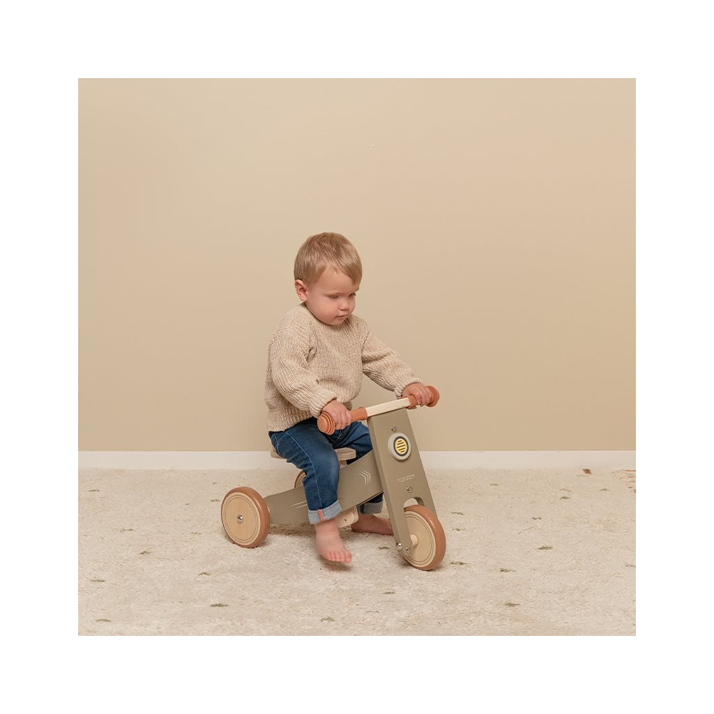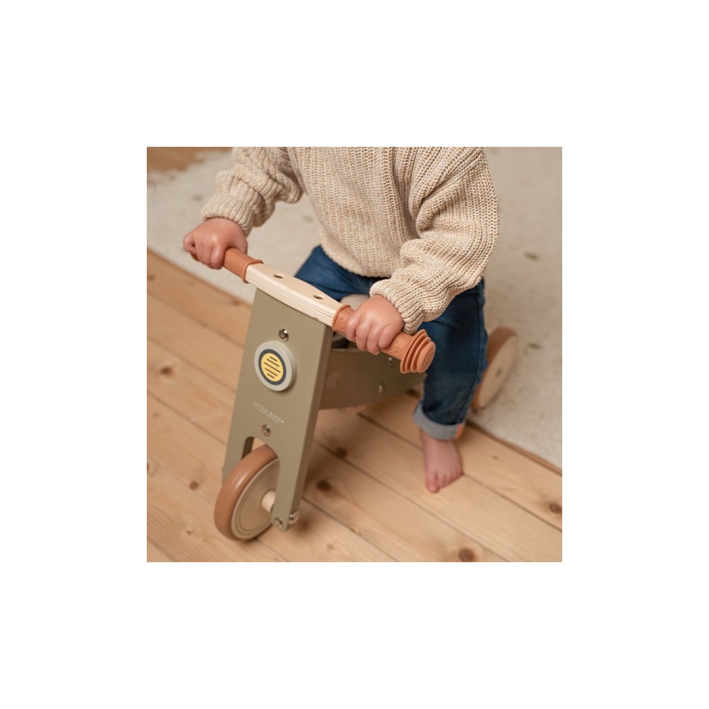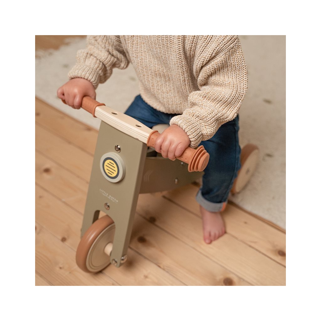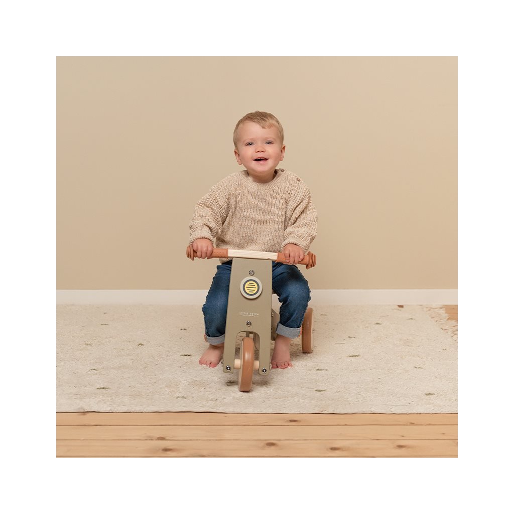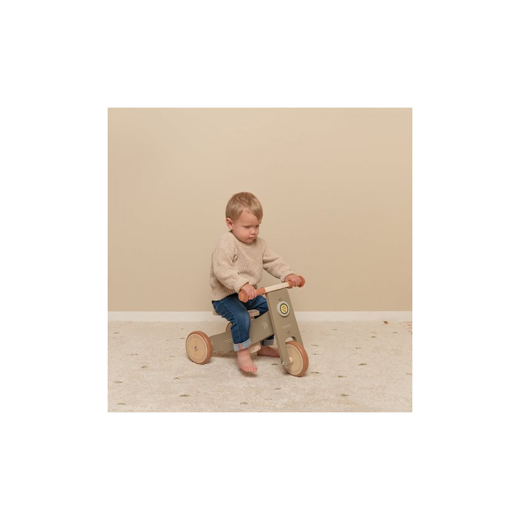 Detské odrážadlo v krásnom drevenom prevedení s tromi kolesami pre väčšiu stabilitu. Kolesá majú gumovú hranu pre hladkú jazdu, gumené rukoväte riadidiel poskytujú príjemné držanie a ovládanie odrážadla. Robustné sedadlo umožňuje pohodlné a stabilné sedenie.