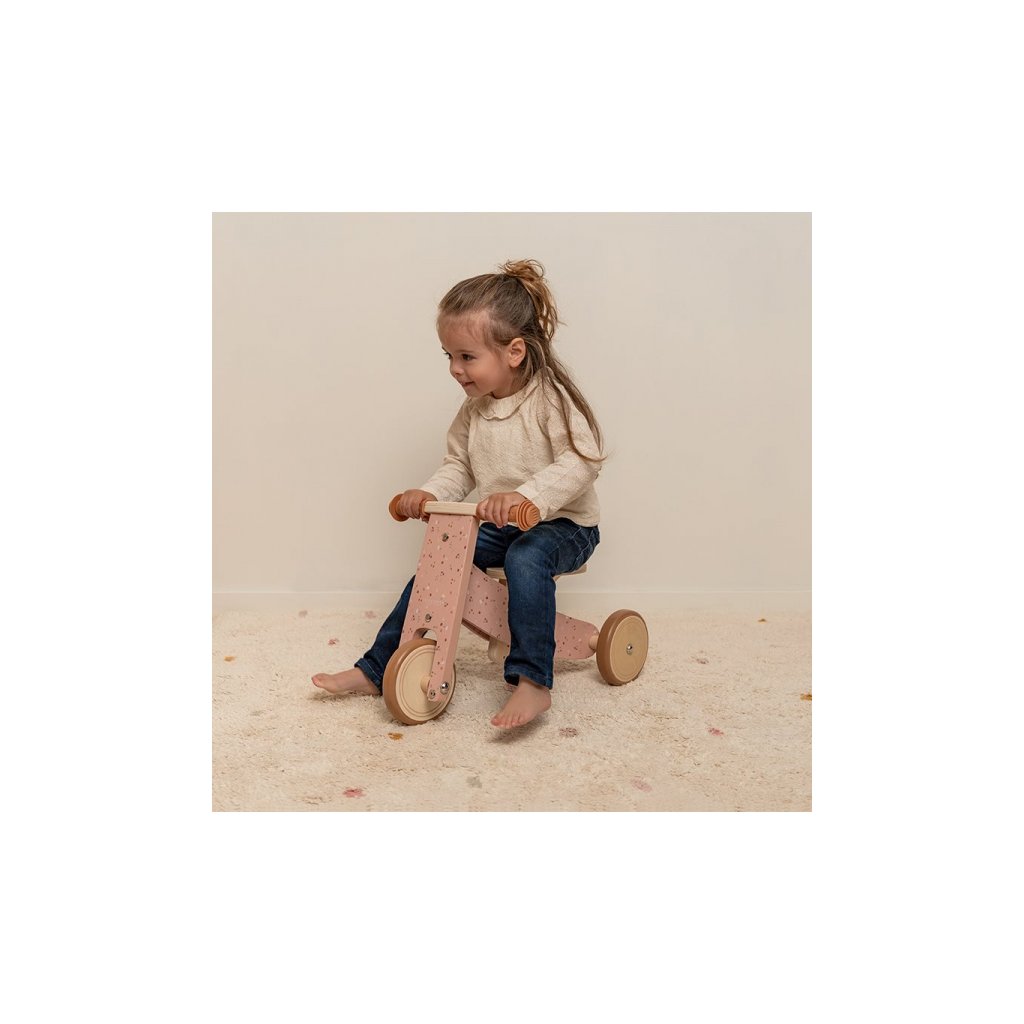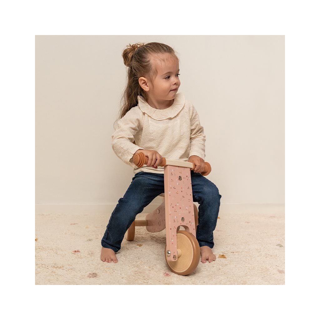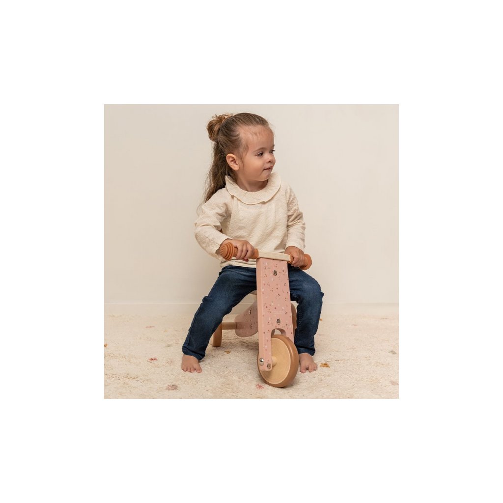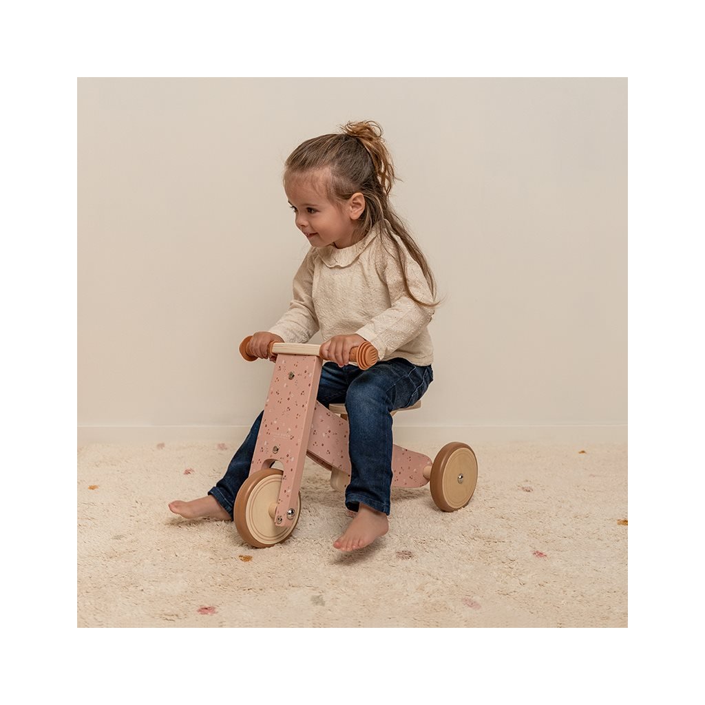 Detské odrážadlo v krásnom drevenom prevedení s tromi kolesami pre väčšiu stabilitu. Kolesá majú gumovú hranu pre hladkú jazdu, gumené rukoväte riadidiel poskytujú príjemné držanie a ovládanie odrážadla. Robustné sedadlo umožňuje pohodlné a stabilné sedenie.