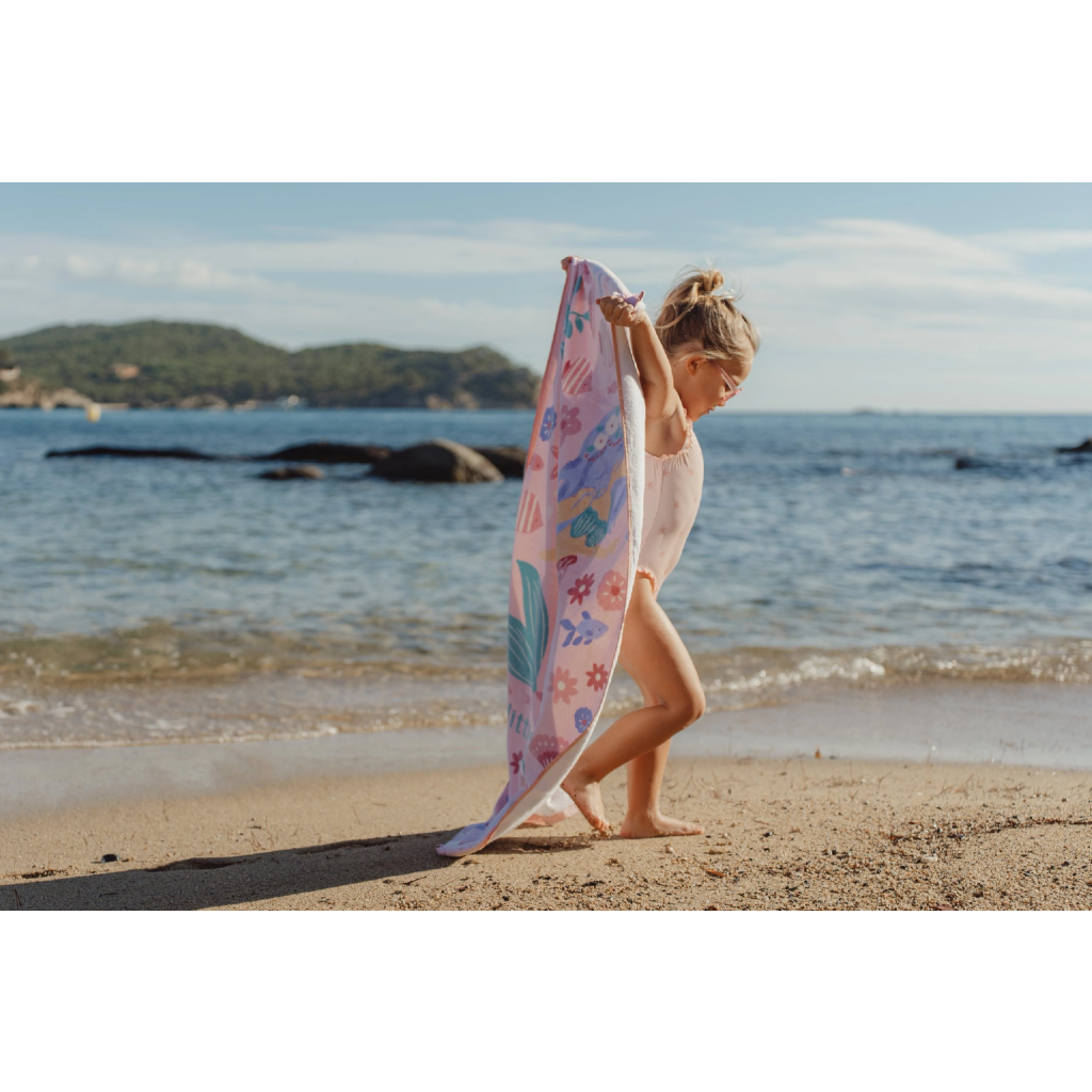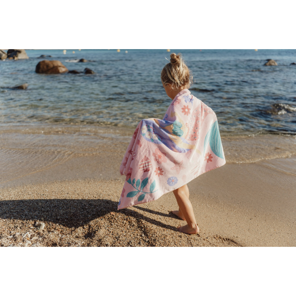 Mäkká froté osuška z jemnej organickej bavlny s krásnou potlačou je ideálna pre ľahké a rýchle osušenie a zabalenie dieťaťa po kúpaní v bazéne, v mori aj doma po kúpeli.