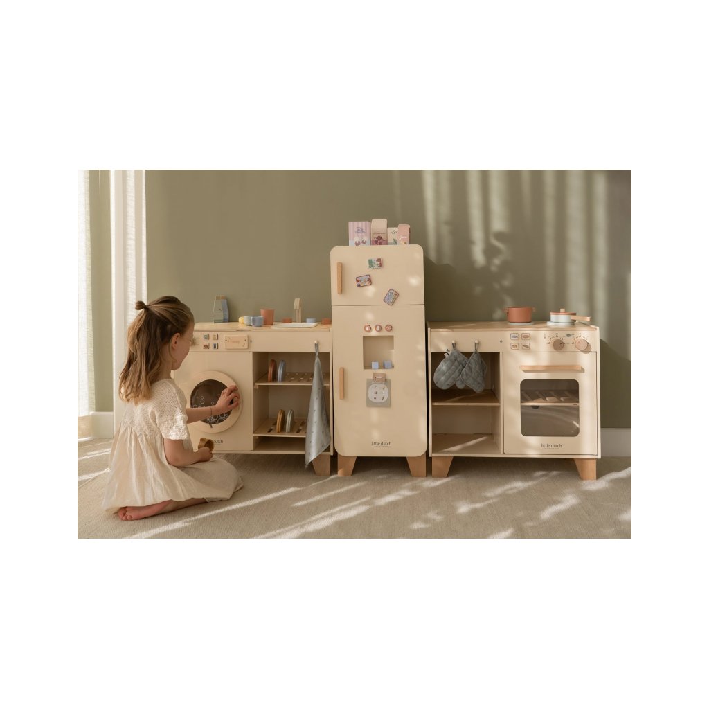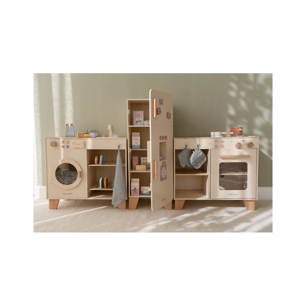 Vďaka možnosti kombinácie s kuchynkou a chladničkou z kolekcie drevených hračiek Little Dutch je možné vytvoriť plne vybavenú hernú kuchyňu. Tú potom môžete doplniť ďalšími drevenými hračkami Little Dutch, napr. kávovarom, sendvičovačom, kuchynskou váhou, krájacím ovocím, krájacou zeleninou, čajovým servisom a pod.