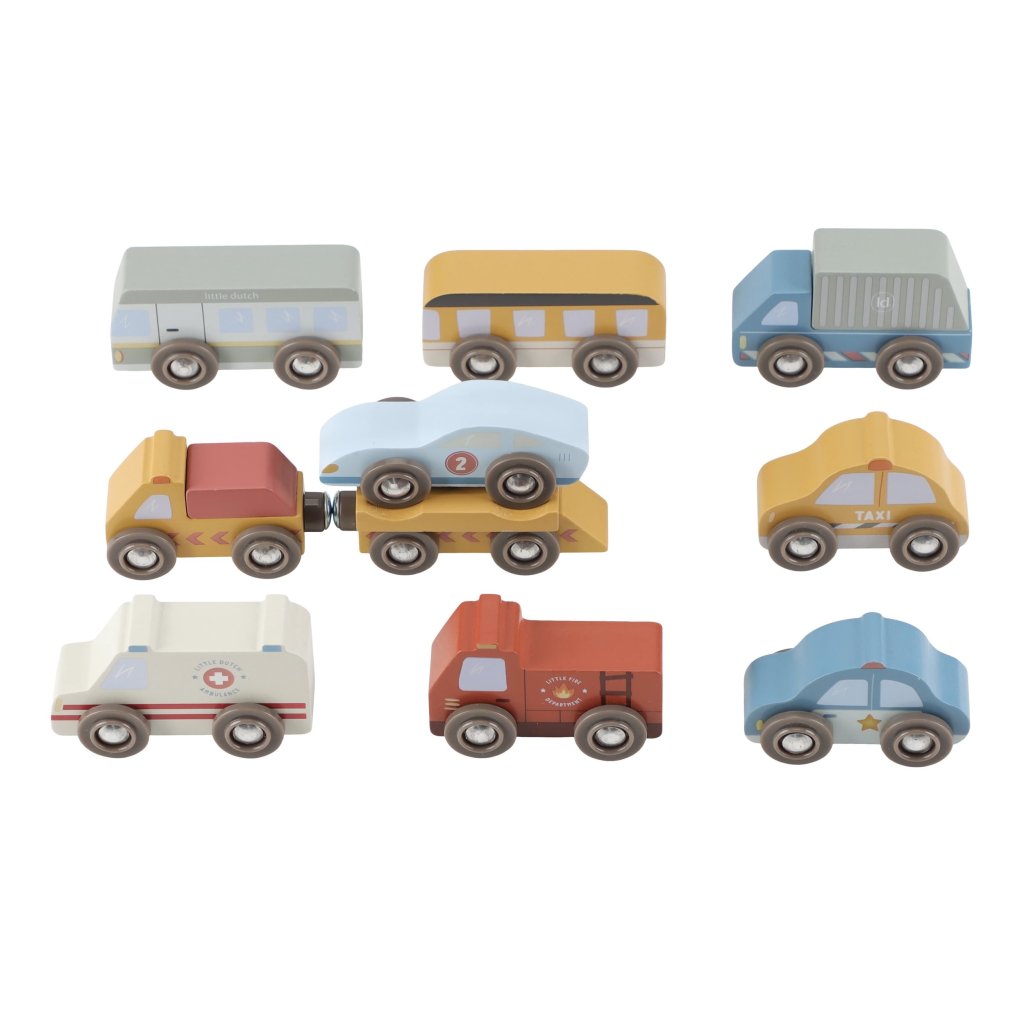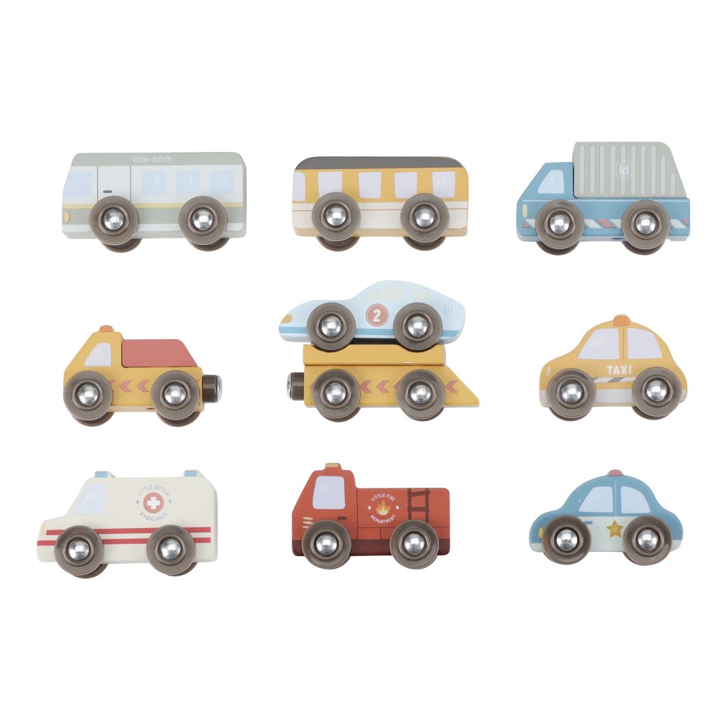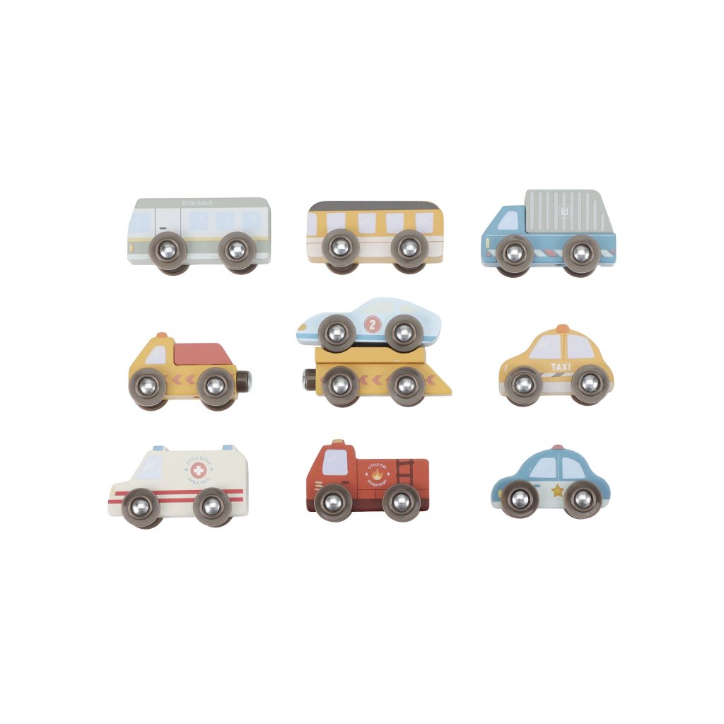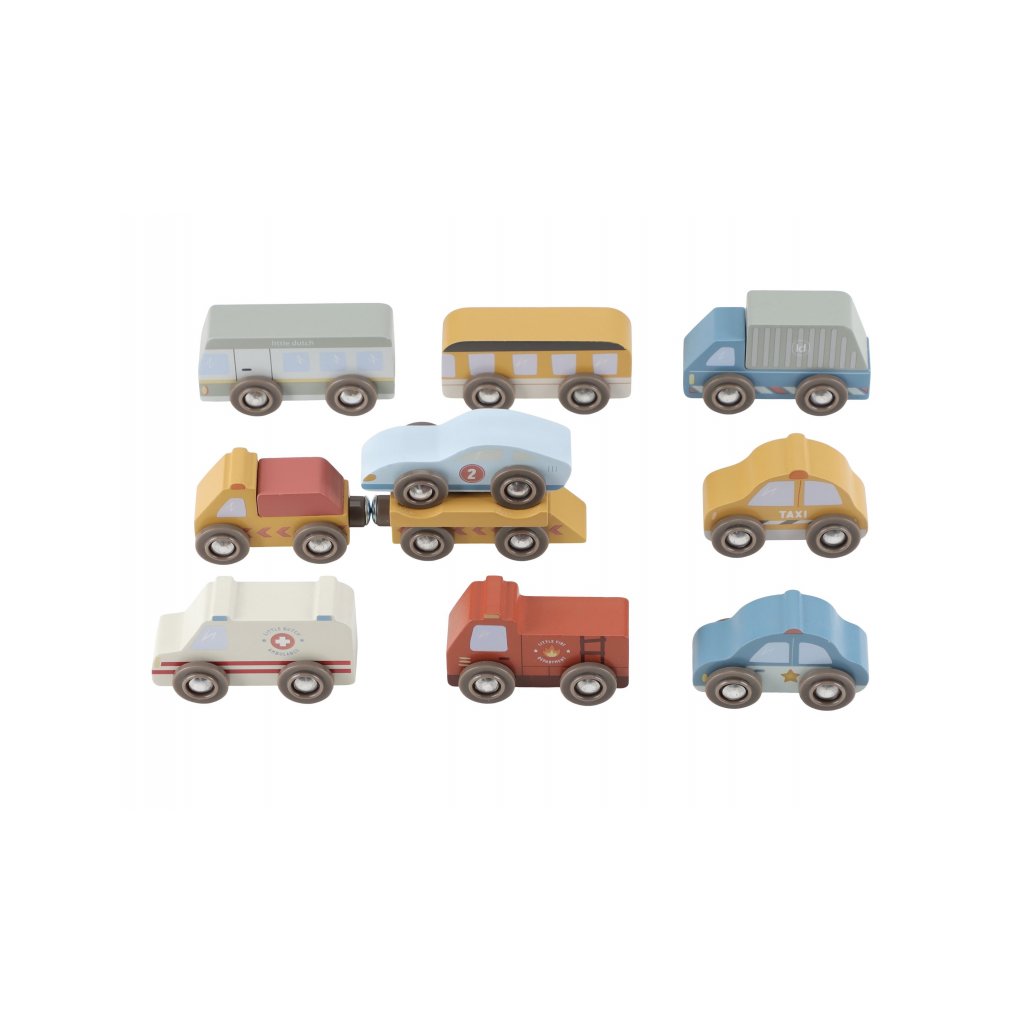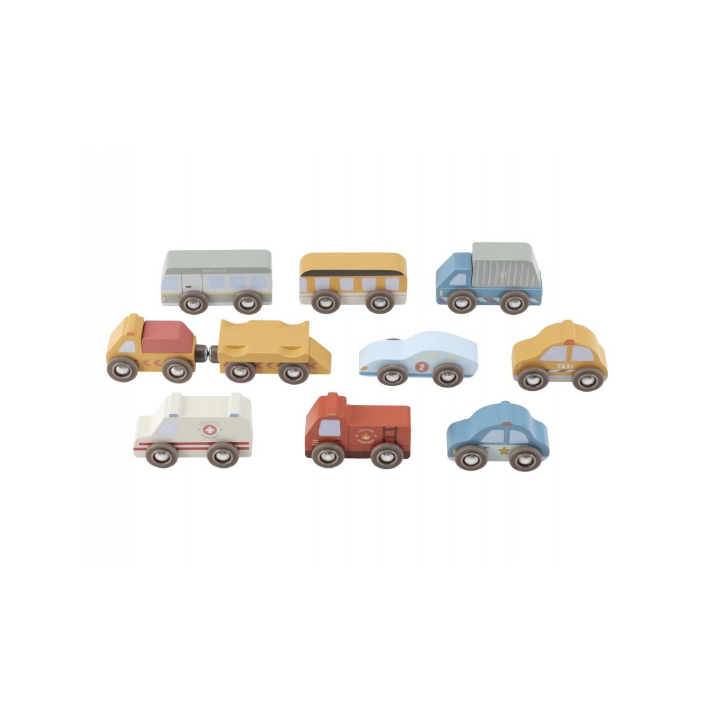 Autíčka sú kompatibilné s vláčikodráhou Little Dutch a jej rozširujúcimi sadami. Deti si tak môžu vytvoriť vlastné mesto plné akcie, príbehov a pohybu. Hra podporuje predstavivosť, jemnú motoriku a samostatné rozprávanie.