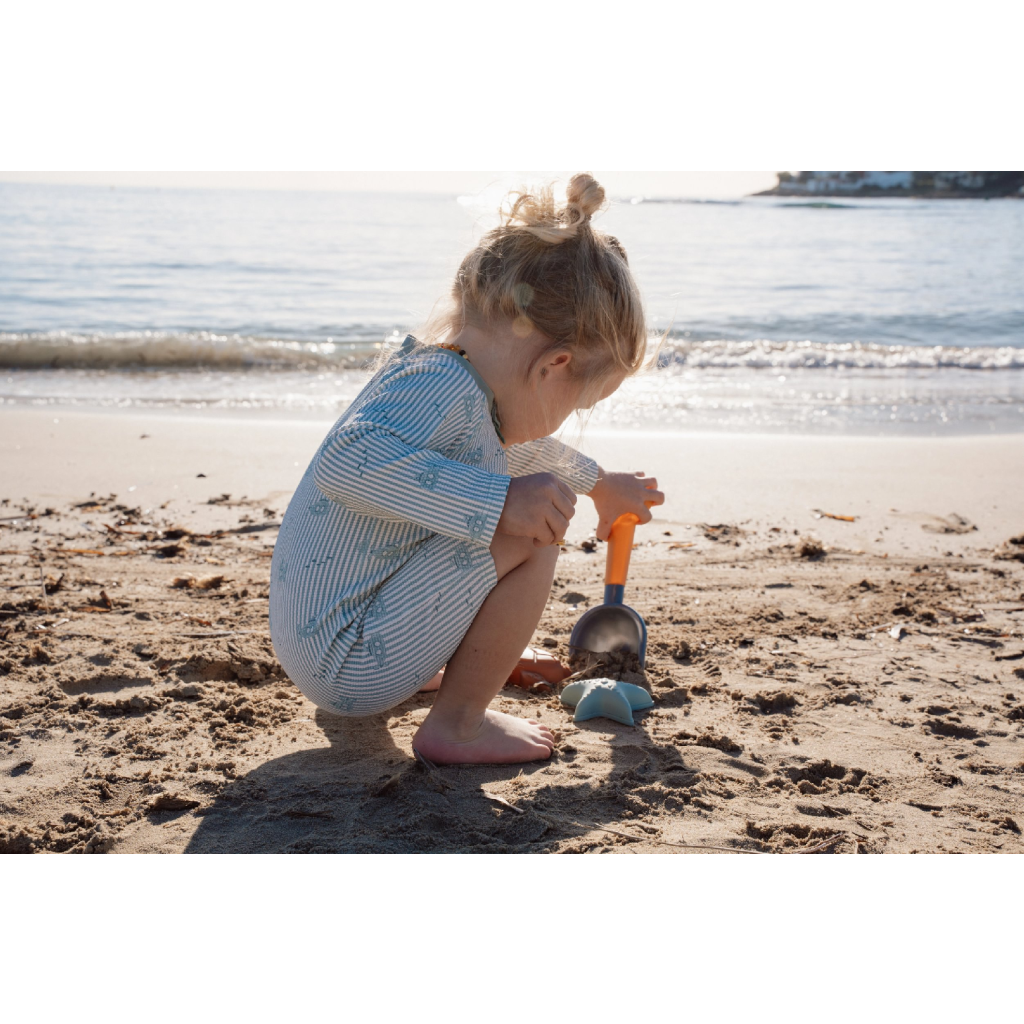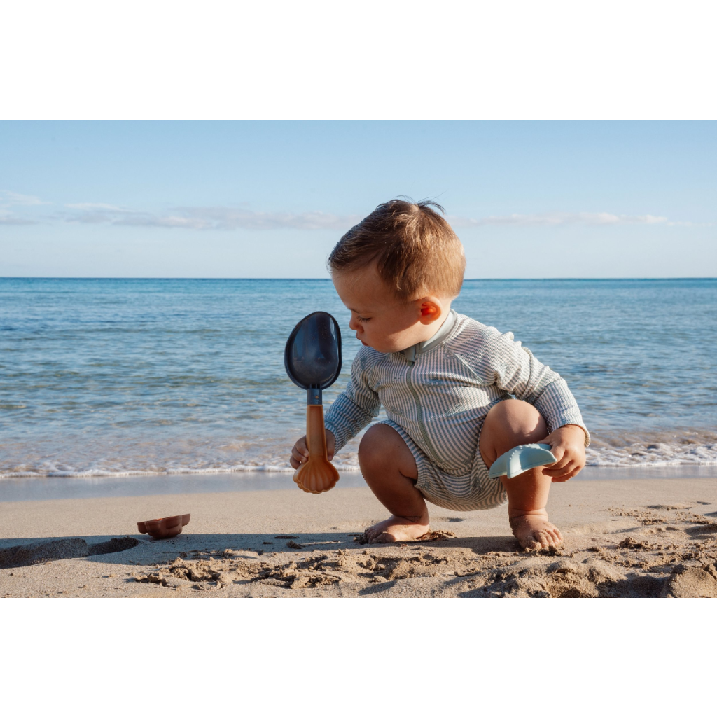Sada na piesok s motívmi života na mori sa bude deťom hodiť doma na záhrade aj pri mori na pláži. Sadu tvorí lopatka a dve formičky v kvalitnom prevedení z pevného plastu.