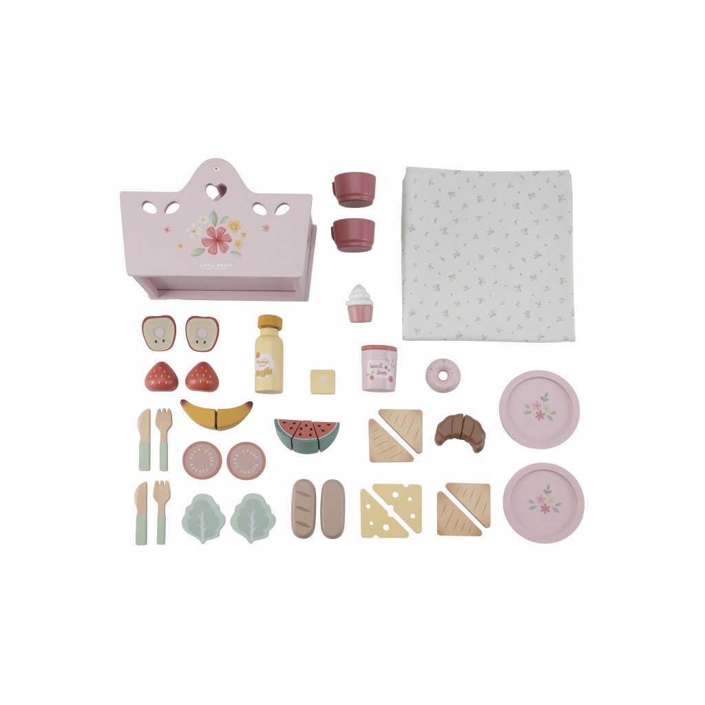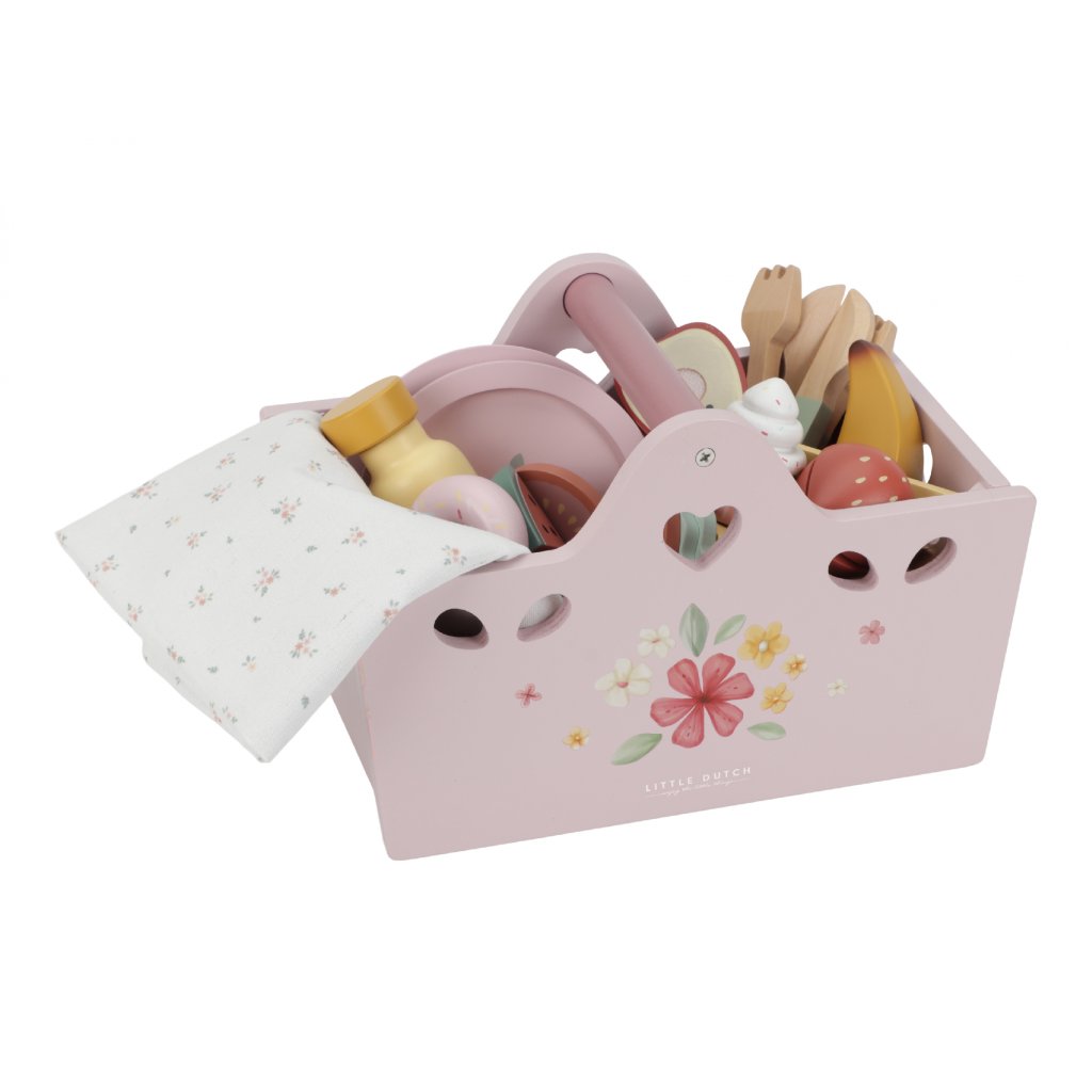 Rozložte na zem piknikovú deku a usporiadajte spolu s vašim dieťaťom piknik pre celú rodinu alebo pre obľúbené bábiky a plyšové hračky! Všetko, čo je pre piknik potrebné, nájdete v kvalitnom drevenom prevedení v košíku s krásnou kvetinovou potlačou. Stačí už len pozvať hostí a piknik môže začať!
