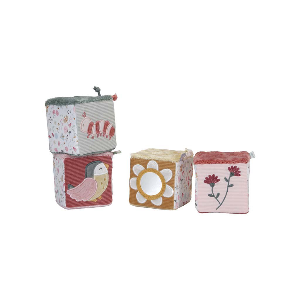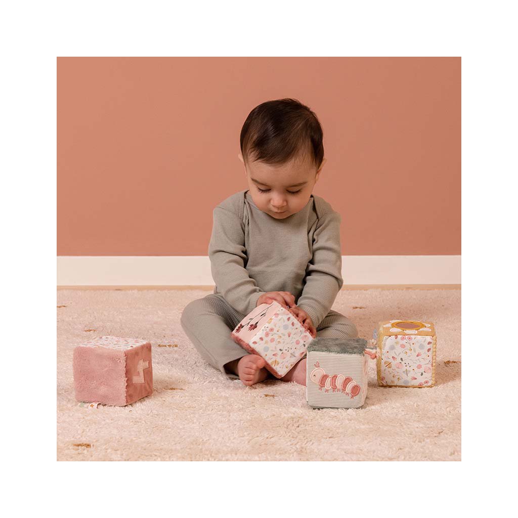 Vďaka rozmanitým zvukom, textúram a farbám, ktoré môžete objaviť, táto veselá sada mäkkých kociek s aktivitami zabaví vaše bábätko na celé hodiny. Hravou formou je navyše stimulovaná koordinácia očí a rúk. Súprava sa skladá zo štyroch senzorických kociek, z ktorých každá je definovaná jemnými farbami a jedinečným číslom. Detské ruky objavia aj zábavné štítky, plyšové panely a slnečné zrkadlo.