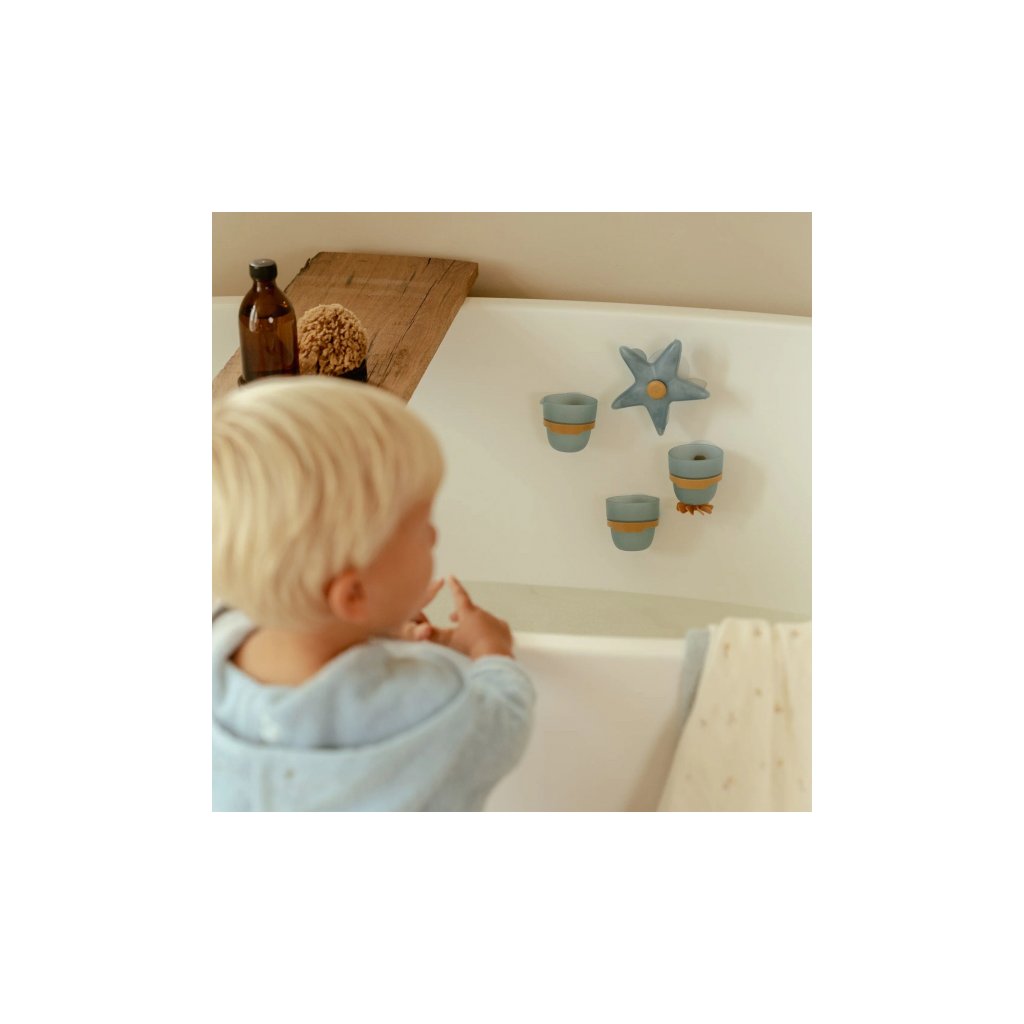 Premeňte kúpanie na radostnú hru so sadou téglikov Little Dutch! Tento hravý set obsahuje vodný mlynček v tvare hviezdice, dva tégliky a nalievací hrnček, ktoré možno pomocou prísaviek ľahko pripevniť na stenu vane alebo sprchy. Stačí naliať vodu na hviezdicu a sledovať, ako sa začne točiť - deti si pritom precvičujú koordináciu, objavujú zákonitosti pohybu vody a rozvíjajú jemnú motoriku. Jemné farby a premyslený dizajn hračky robia z kúpania príjemný rituál plný fantázie a objavovania.