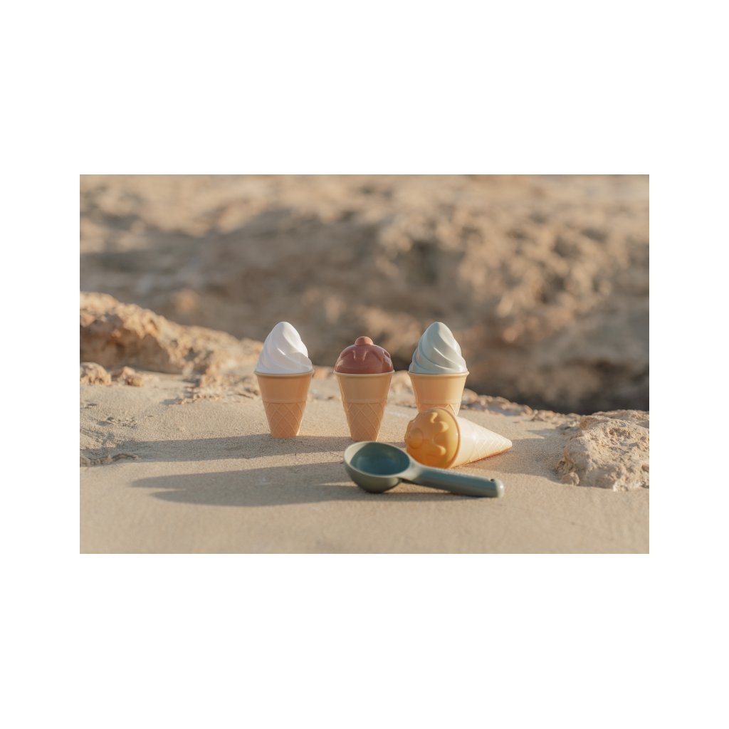Sada obsahuje: 4 kornúty, naberačku na zmrzlinu a 4 formičky v tvare zmrzliny.