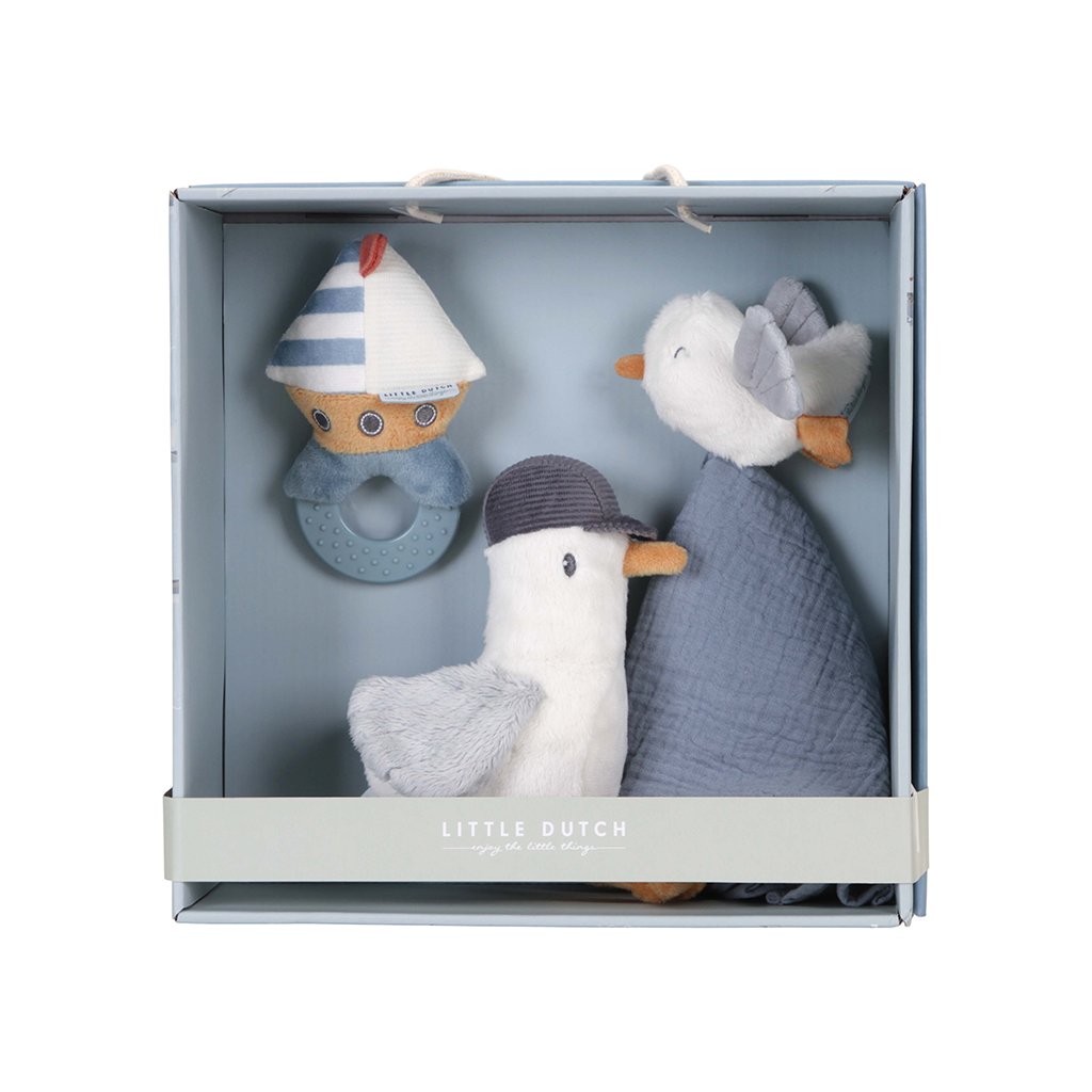 Krásna darčeková sada plyšových hračiek z dizajnovej kolekcie Little Dutch Námornícky záliv je ideálna ako darček pre novorodené bábätko. Sada obsahuje hrkálku, maznáčika a plyšovú hračku v podobe rozkošnej čajky.