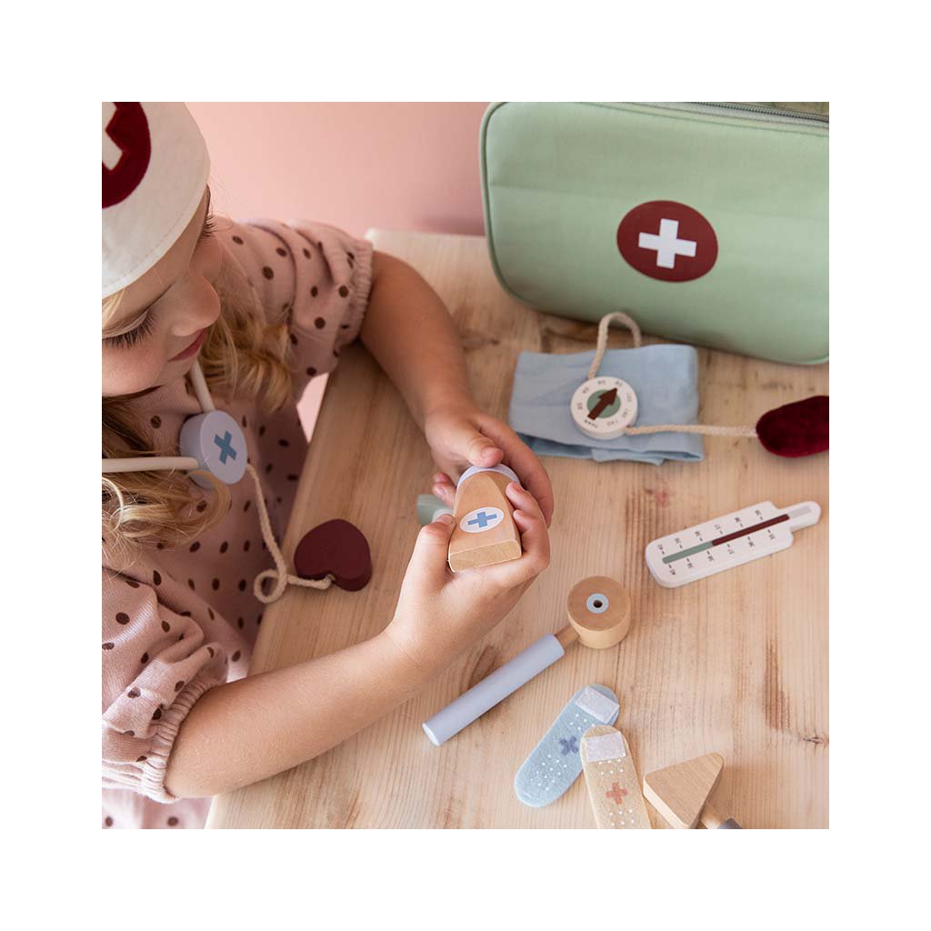 Vaši pacienti sa budú cítiť oveľa lepšie, keď budete mať po ruke túto lekársku tašku, pripravení zmerať teplotu, skontrolovať tep a krvný tlak či použiť stetoskop. Táto rola učí deti, že návšteva lekára nie je vôbec desivá vec!