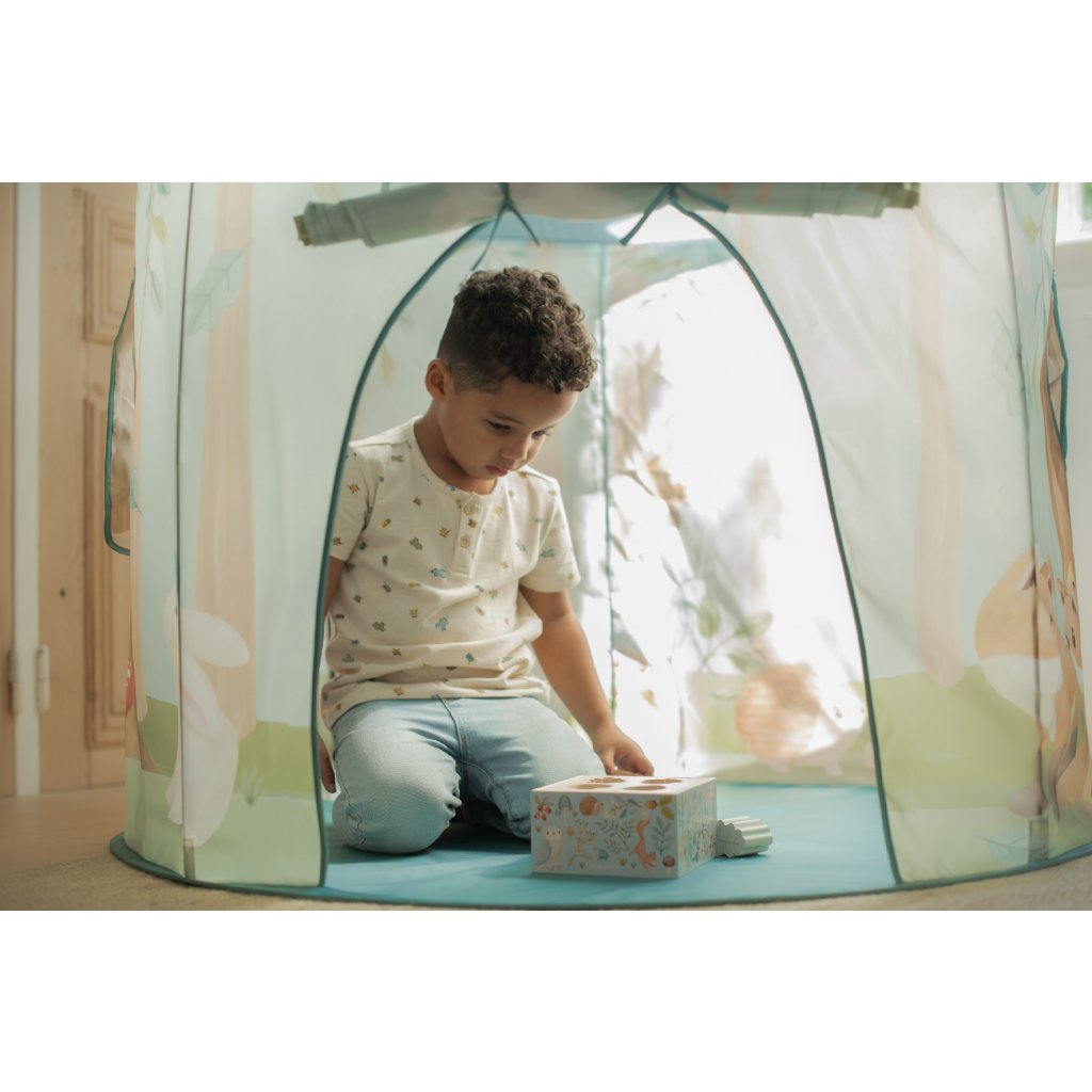 Úžasný stan je skvelým miestom pre všetky deti, ktoré majú rady schovávačky a svoj kútik len pre seba. Stan s krásnou potlačou motívov zo života v lese bude vďačným pomocníkom pri hrách a rozvíjaní fantázie vašich detí. Stan je vybavený dvoma okienkami a vchodovým závesom.