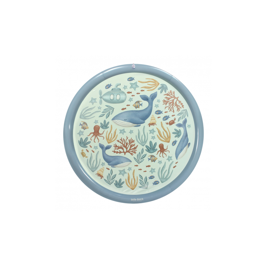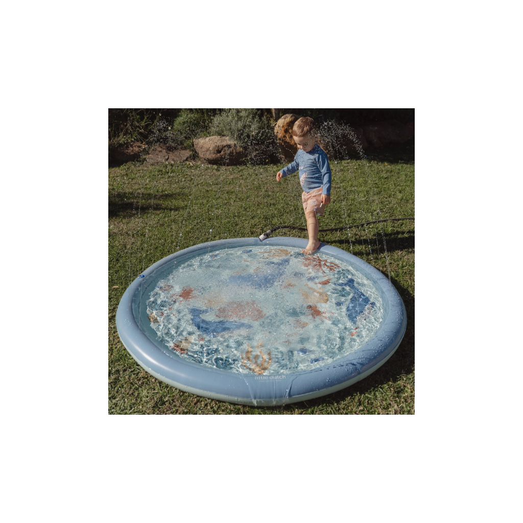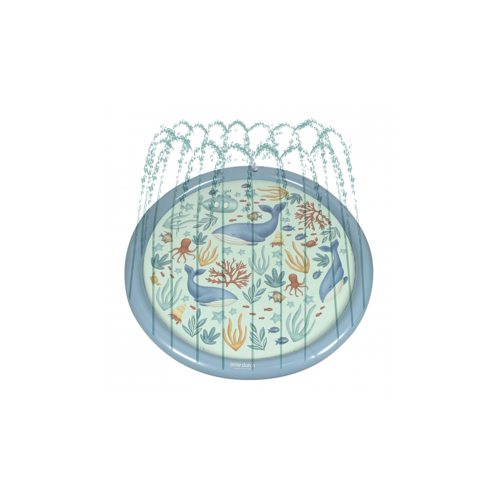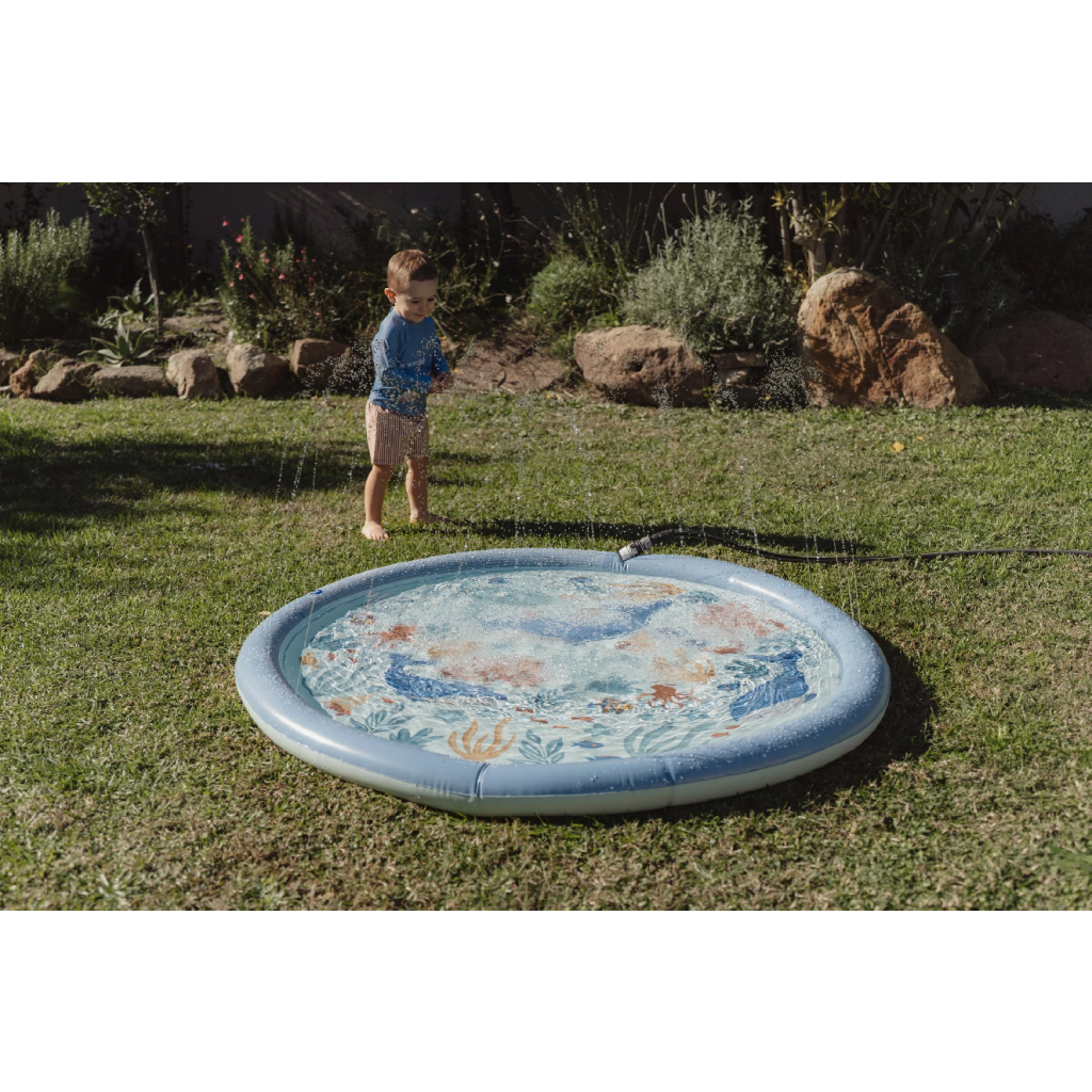 Originálna hracia podložka s vodotryskom, ktorý vytvoríte jednoducho pripojením na záhradnú hadicu s pomocou priloženej spojky. Podložka s krásnou potlačou motívov zo života pod morskou hladinou je ideálny doplnok na záhradu počas horúcich letných dní. Deti si budú užívať behanie cez striekajúci vodotrysk aj hranie sa s vodou na podložke, ktorá funguje ako plytký bazénik.