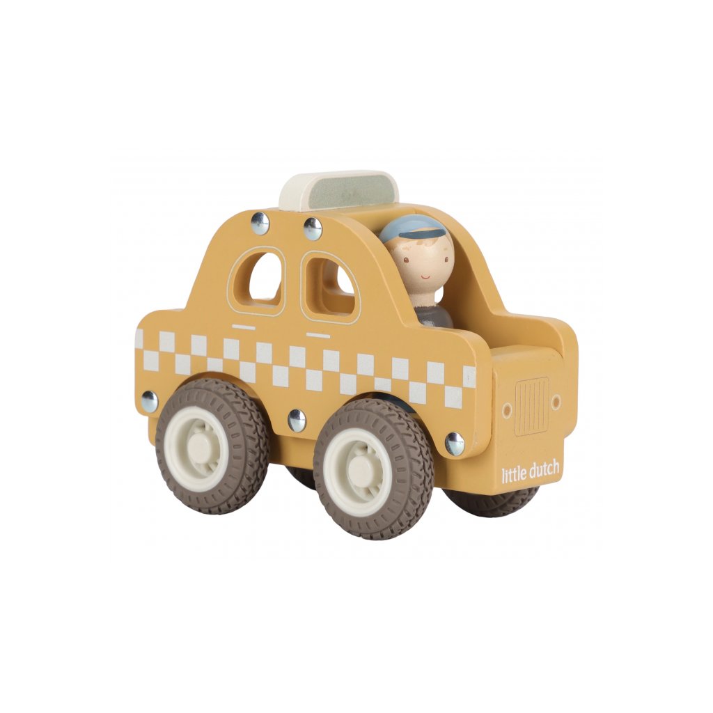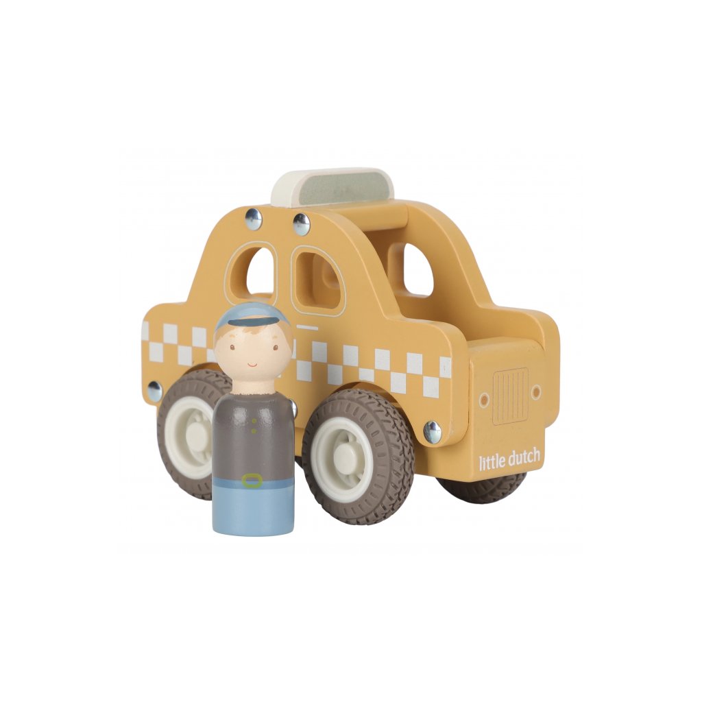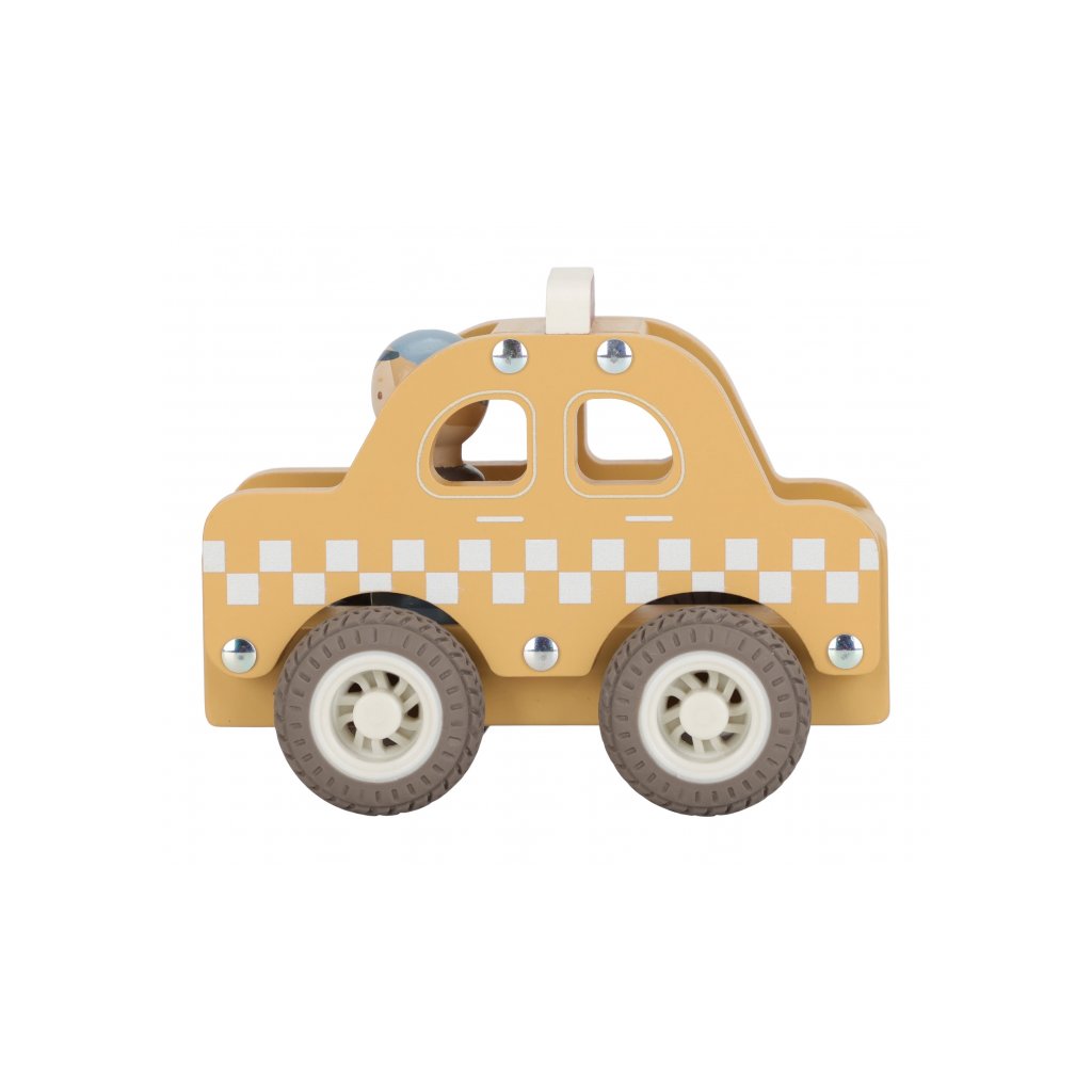 Naskočte a nechajte sa odviezť! Toto drevené taxi je pripravené bezpečne dopraviť každého cestujúceho do cieľa. Vďaka gumovým pneumatikám sa hladko pohybuje po podlahe a sympatický vodič už čaká, až vyrazíte na cestu.