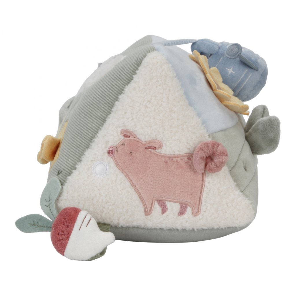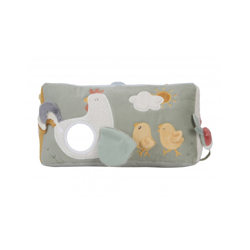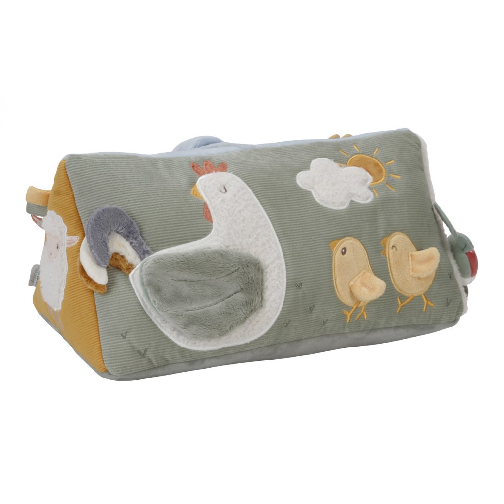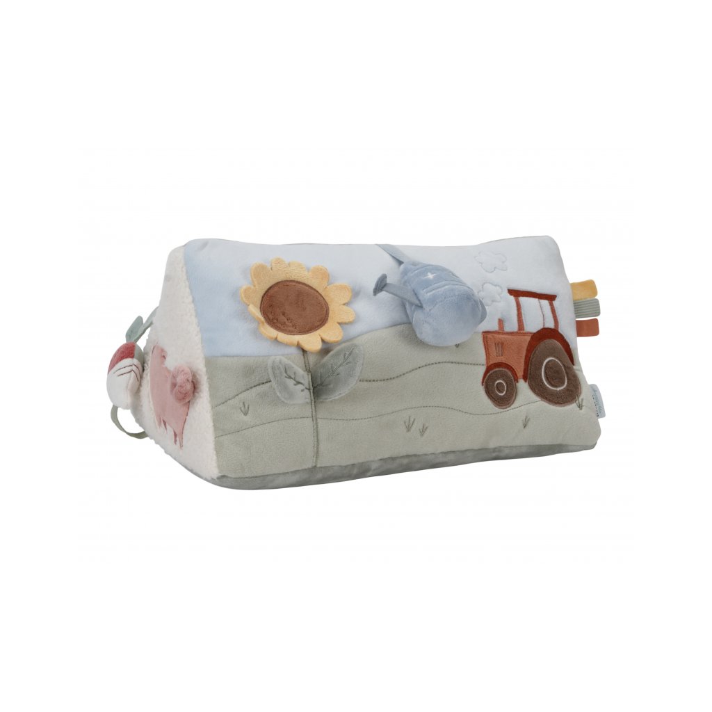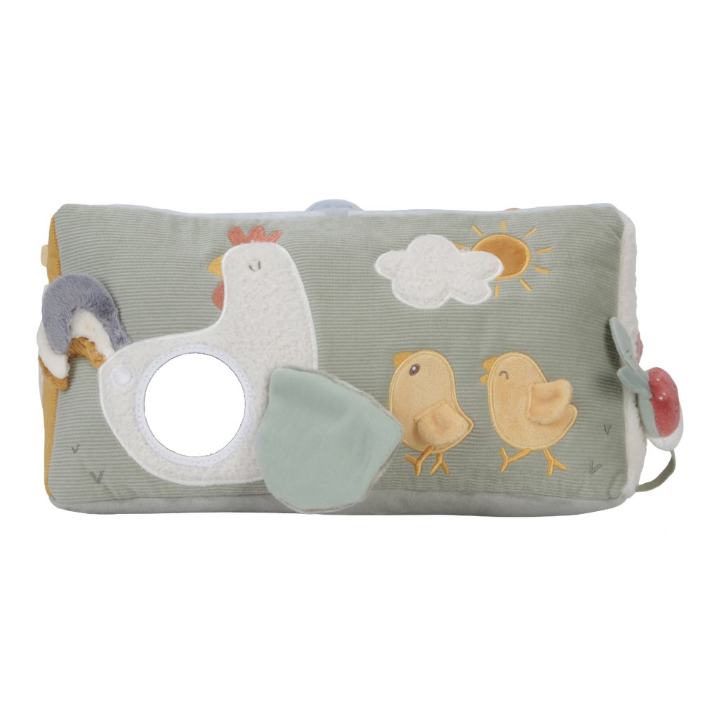 Vankúšik z jemného, mäkkého materiálu s krásnymi motívmi života na farme je špeciálne navrhnutý, aby podporoval hranie dieťaťa na brušku. Hračky na vankúšiku aj originálne vyšívané aplikácie lákajú dieťa na skúmanie a pozorovanie. Každá strana vankúšika je iná, takže stačí vankúšik otočiť a ponúknuť dieťaťu nové podnety na zabavenie aj rozvíjanie jeho jednotlivých zmyslov.