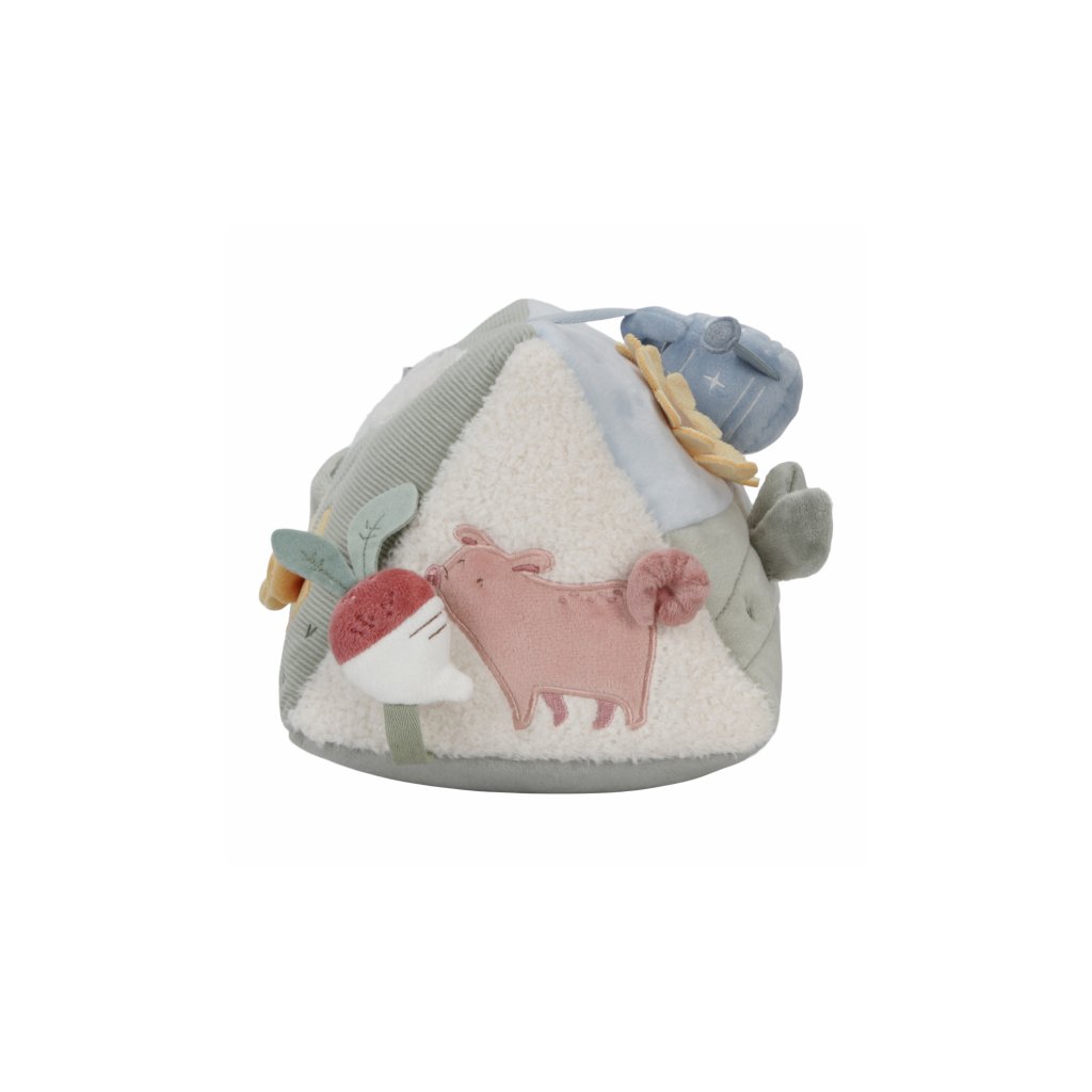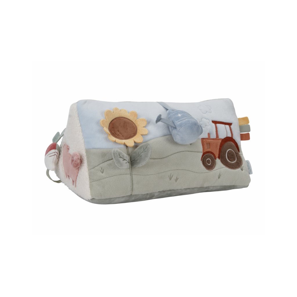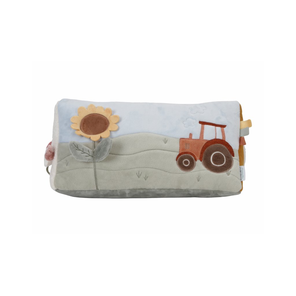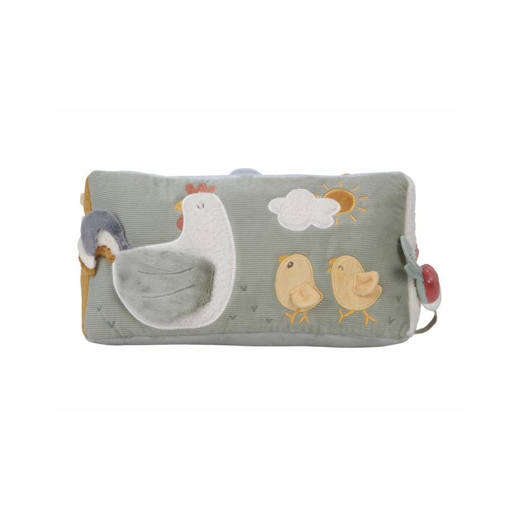 Vankúšik z jemného, mäkkého materiálu s krásnymi motívmi života na farme je špeciálne navrhnutý, aby podporoval hranie dieťatka na brušku. Hračky na vankúšiku aj originálne vyšívané aplikácie lákajú dieťatko na skúmanie a pozorovanie. Každá strana vankúšika je iná, takže stačí vankúšik otočiť a ponúknuť dieťatku nové podnety na zabavenie aj rozvíjanie jeho jednotlivých zmyslov.