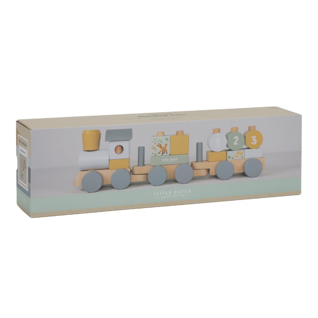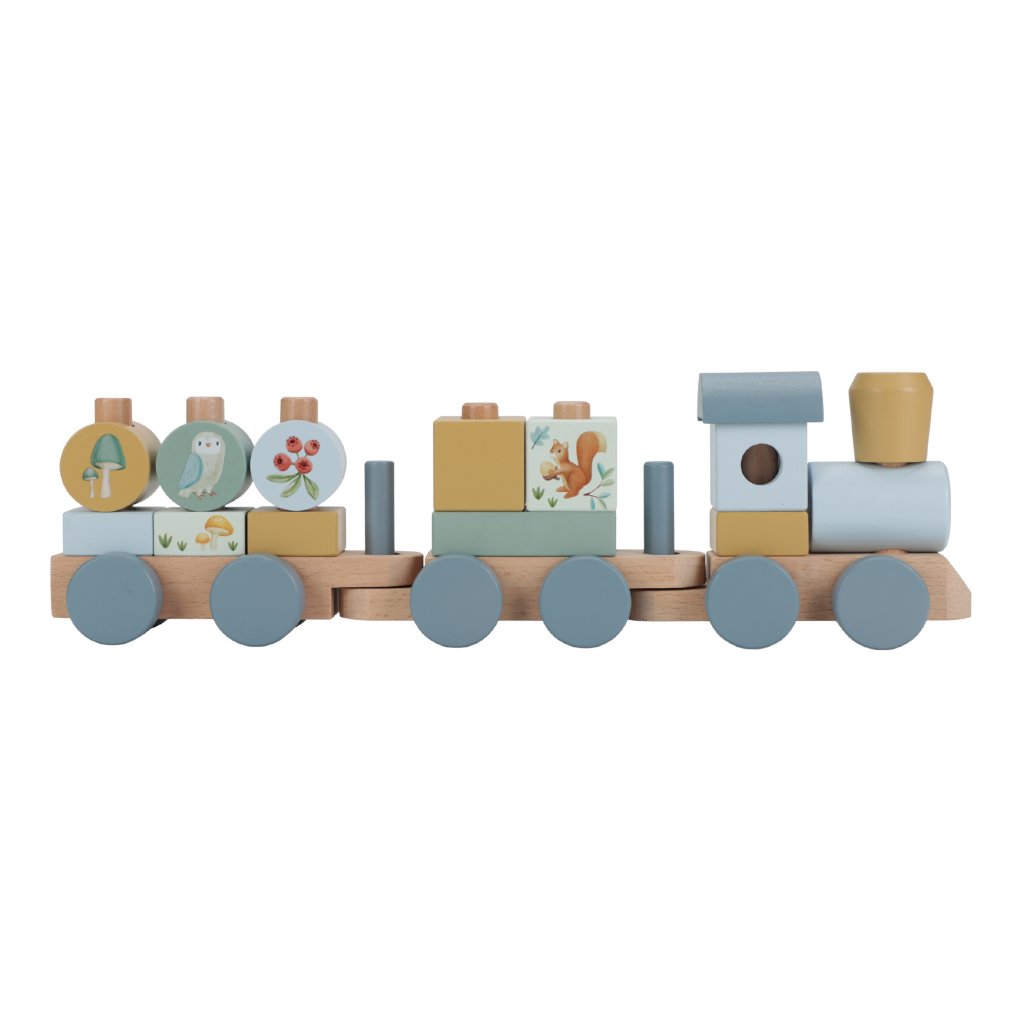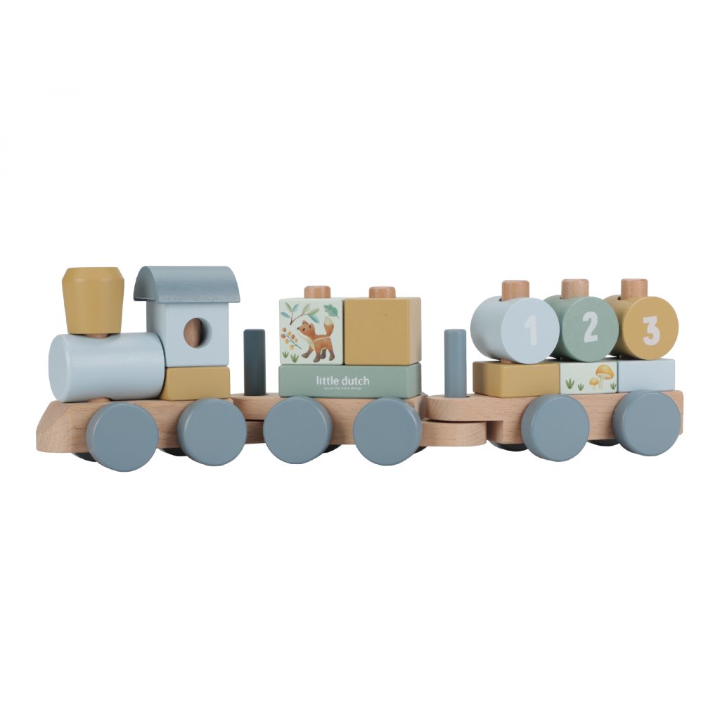 Krásny drevený vláčik z dielne Little Dutch je potlačený obrázkami motívov zo života v lese. S kockami rôznych tvarov a farieb môže vaše dieťa zostavovať rôzne varianty vagónov.