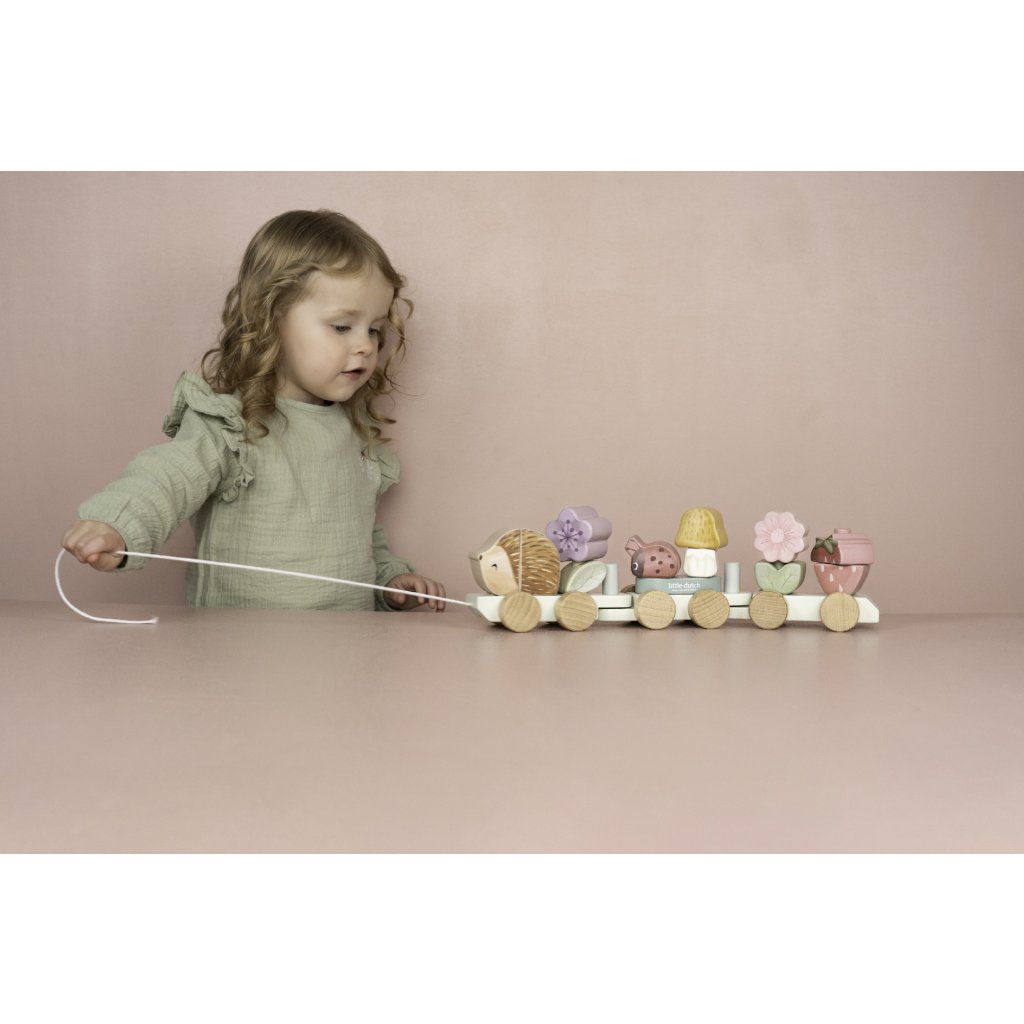 Originálny drevený vláčik z dielne Little Dutch je tvorený kockami rôznych farieb v tvare ježka, lienky, huby, kvetov a jahody. Kombinovaním kociek si vaše dieťa môže zostavovať rôzne varianty vagónov podľa svojej fantázie.