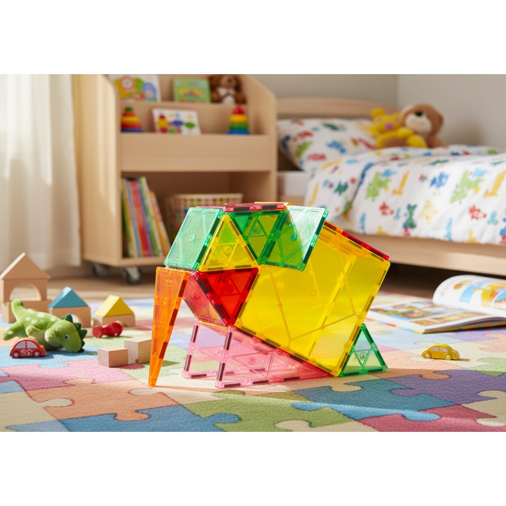 Táto magnetická stavebnica podporuje tvorivosť, logické myslenie aj jemnú motoriku. Vďaka pevným magnetom je hra stabilná, bezpečná a mimoriadne zábavná. Nie je to len hračka – je to edukačná pomôcka, ktorá prebúdza detskú predstavivosť, učí spolupracovať a motivuje deti objavovať nové tvary a konštrukcie.
