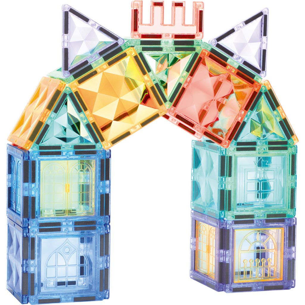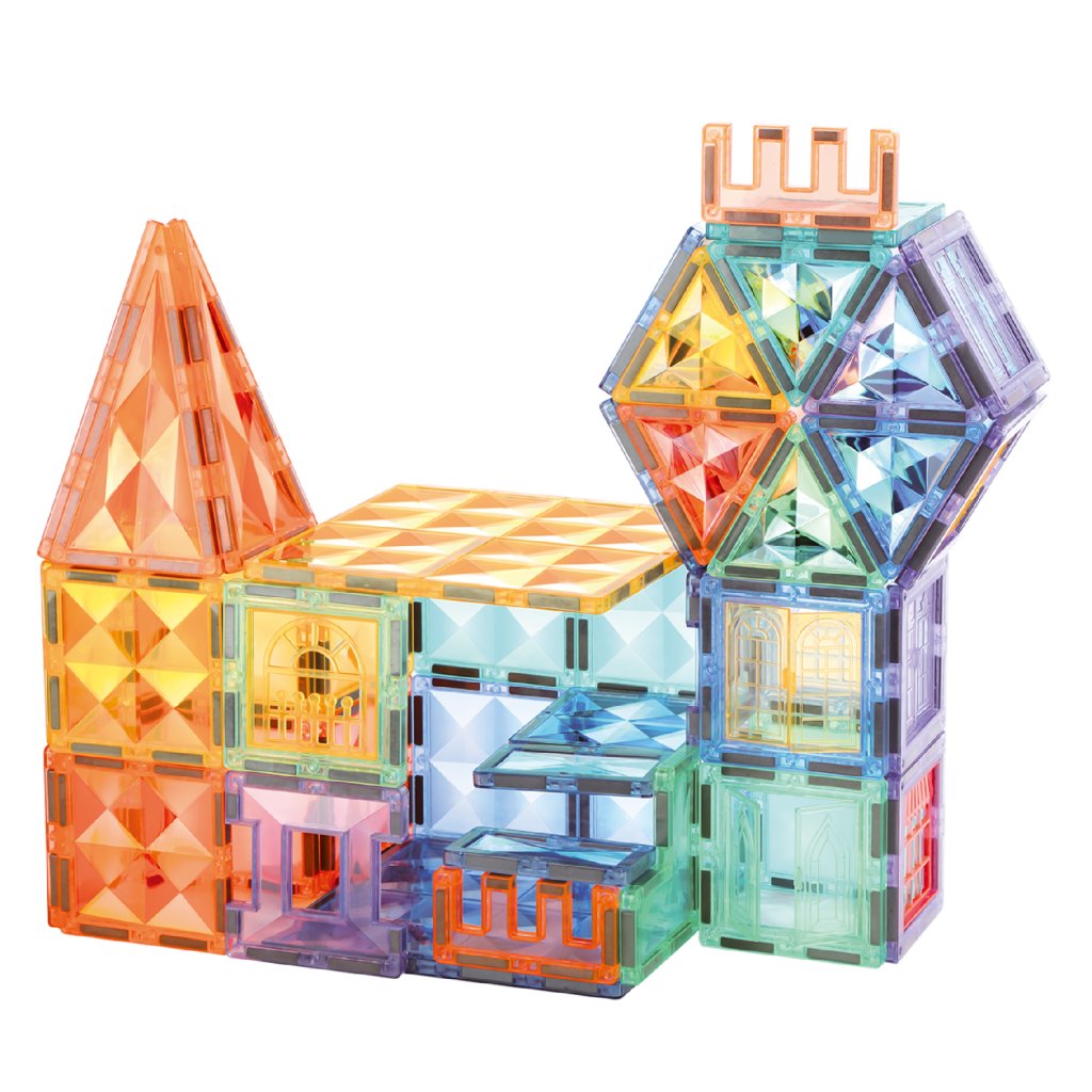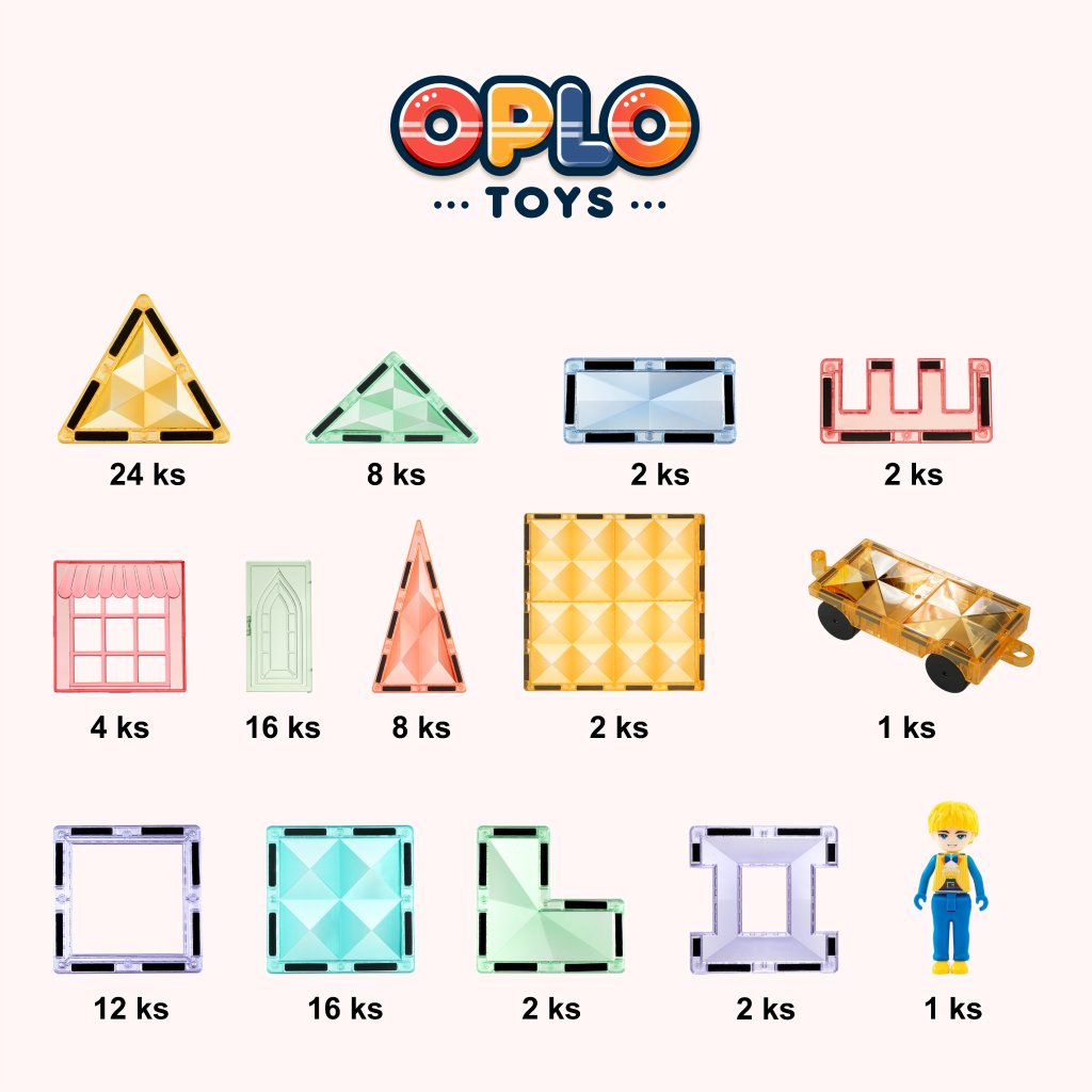 Magnetická stavebnica Oplo Toys – Starshine 100 ks rozžiari každý deň vašich detí. Dieliky v pestrých dúhových farbách sa spájajú ako kúzlom – a z malých nápadov rýchlo vzniknú hrady, domčeky či celé mestečká plné kreatívnych príbehov.