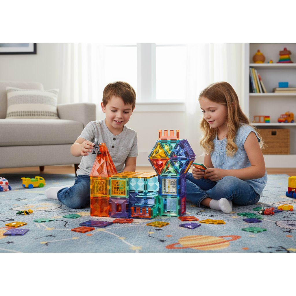 Táto magnetická stavebnica podporuje tvorivosť, logické myslenie aj jemnú motoriku. Vďaka pevným magnetom je hra stabilná, bezpečná a mimoriadne zábavná. Nie je to len hračka – je to edukačná pomôcka, ktorá prebúdza detskú predstavivosť, učí spolupracovať a motivuje deti objavovať nové tvary a konštrukcie.