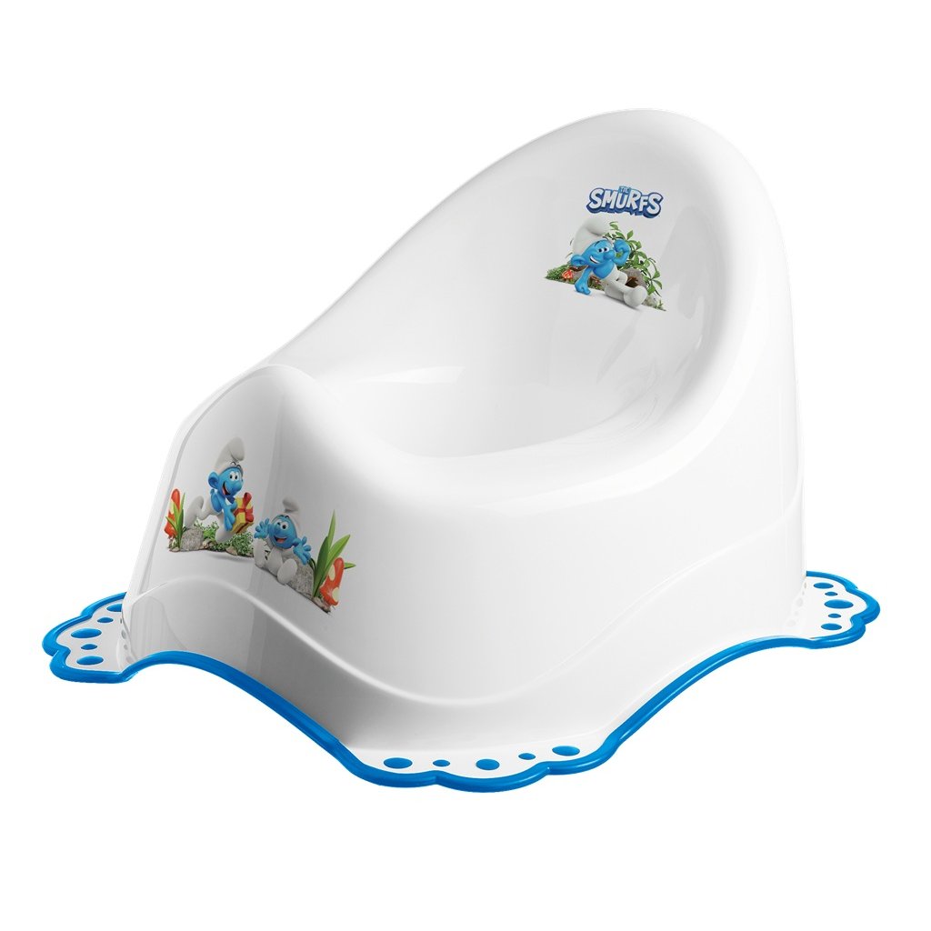Dizajnový nočník z kolekcie Šmolkovia je anatomicky tvarovaný a má vysokú opierku chrbta, aby bol pohodlný pre dievčatá i chlapcov.