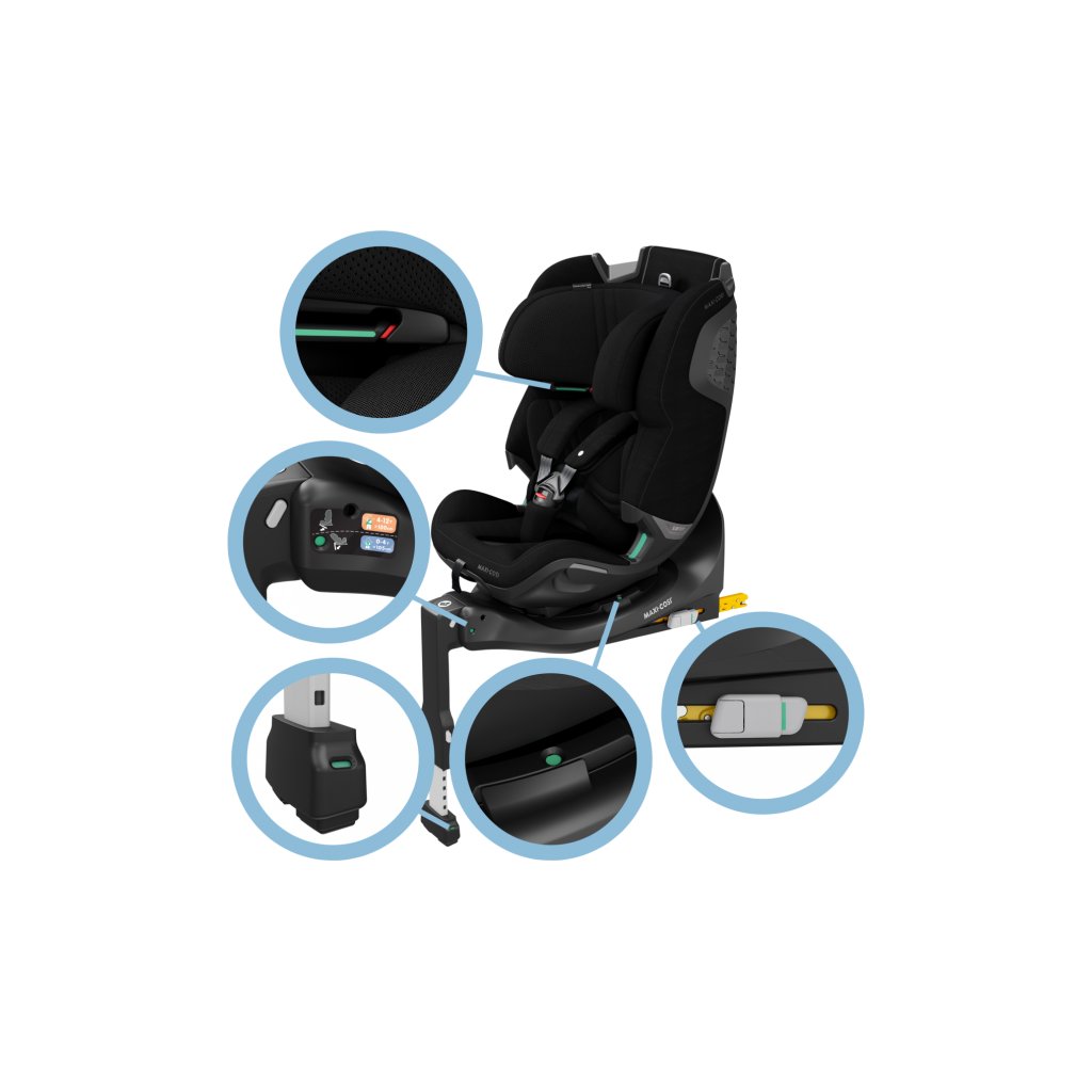 - integrovaná základňa s opornou nohou umožňuje jednoduchú a spoľahlivú inštaláciu do auta s pomocou systému ISOFIX