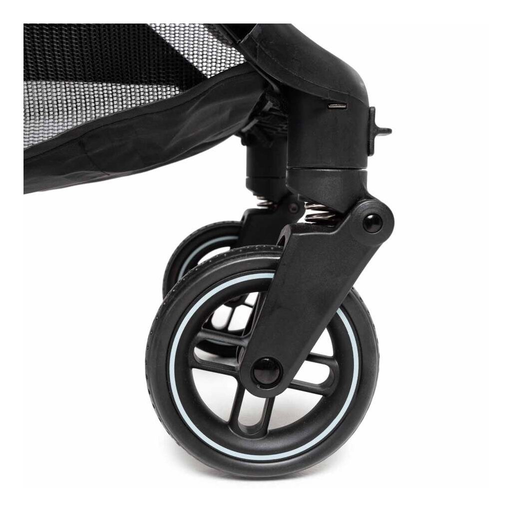 - Predné kolesá kočíka sú otočné o 360 ° pre ľahké manévrovanie