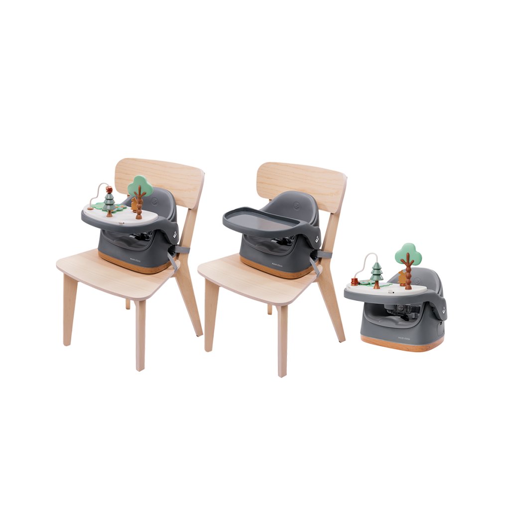 Od hrania po kŕmenie – Maxi-Cosi Jay Plus je kompaktná a zároveň priestranná stolička, ktorá rastie s vašim dieťaťom. Vďaka šikovnej konštrukcii ju možno používať ako samostatnú stoličku, podsedák na stoličke alebo hracie miesto s priloženým hracím pultíkom s aktivitami.