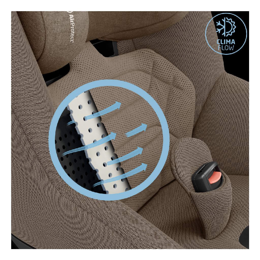 - ventilácia ClimaFlow v opierke chrbta zaistí tepelný komfort dieťaťa v sedačke