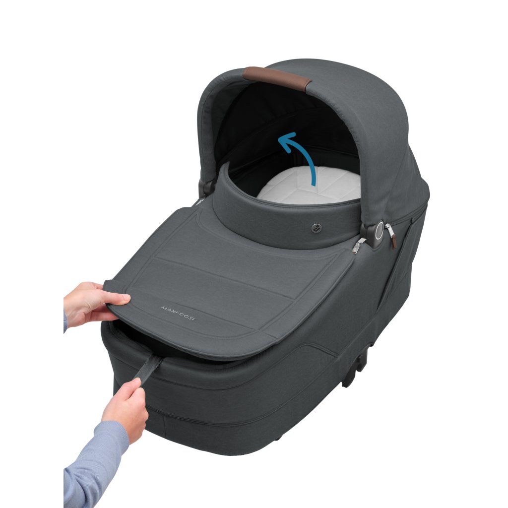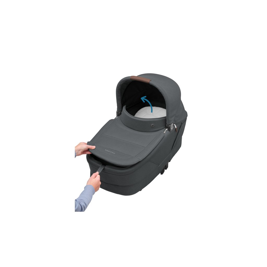 Priestranná vanička Maxi-Cosi Sense s obojstranným priedušným ClimaFlow matracom z pamäťovej peny a ventilačným okienkom poskytne vášmu bábätku pohodlie pri spánku a optimálne vetranie aj počas teplých letných dní. Integrovaný systém SoothingSlope umožňuje jednoduchým spôsobom vytvoriť ľahko naklonenú polohu na spanie, ktorá pomáha minimalizovať riziko refluxu. Veľká sklápacia strieška ochráni dieťa pred slnkom a nepriaznivým počasím. Pripevnenie na podvozok kočíka je veľmi jednoduché s pomocou priložených adaptérov. Vaničku je možné zložiť do kompaktného plochého tvaru a vďaka tomu ľahko skladovať či prepravovať.