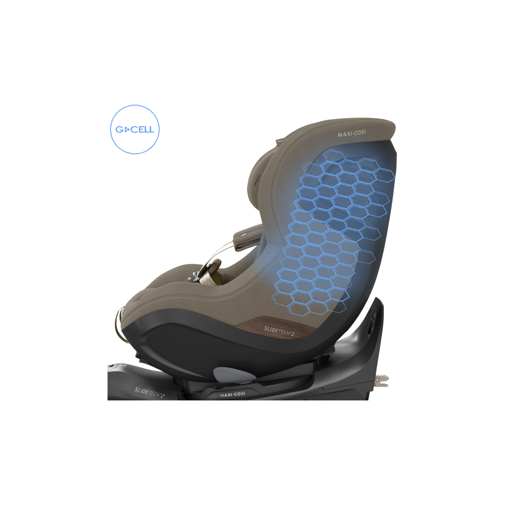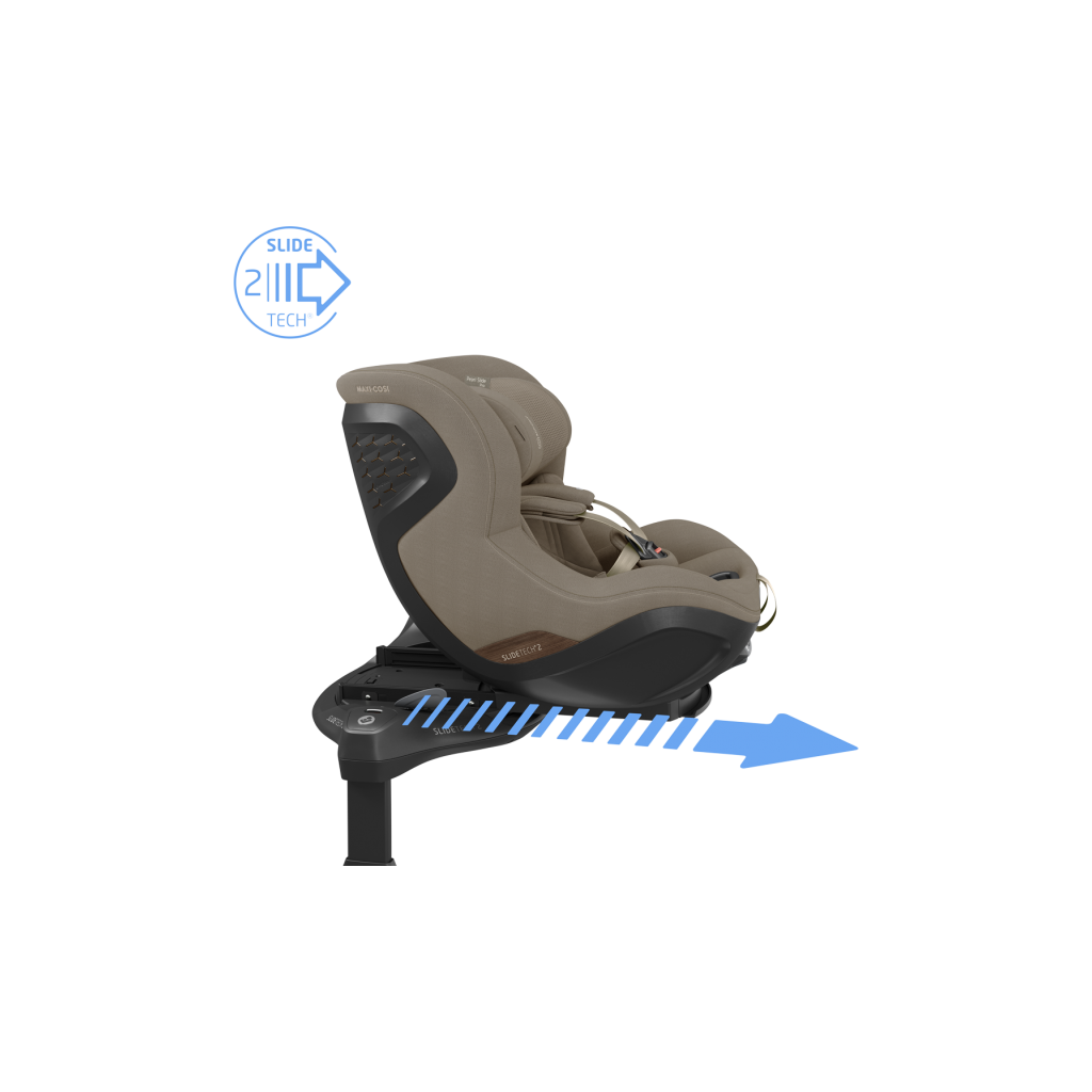 - pohodlné usadenie dieťaťa vďaka samostatne predávanej základni Maxi-Cosi FamilyFix Slide Pro s technológiou SlideTech®2: po otočení sedačky ju možno vysunúť z auta až o 27 cm smerom k rodičovi
