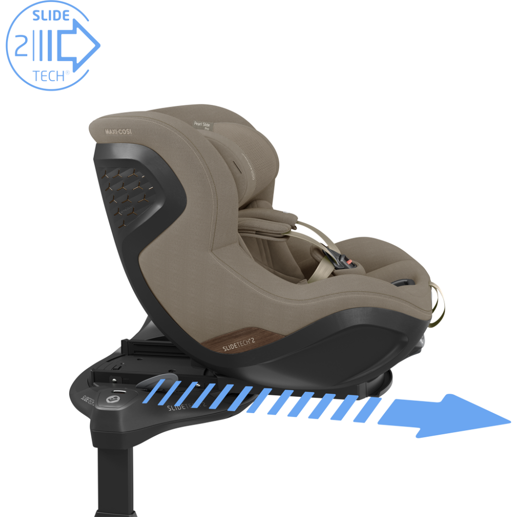 Maxi-Cosi Pearl Slide Pro je autosedačka pre deti od 3 mesiacov do 4 rokov (do 17,5 kg, od 61 do 105 cm). V kombinácii so samostatne predávanou základnou Maxi-Cosi FamilyFix Slide Pro je možné sedačku otočiť a vysunúť smerom k rodičovi až o 27 cm, takže usadzovanie a vyberanie dieťaťa je výrazne pohodlnejšie.