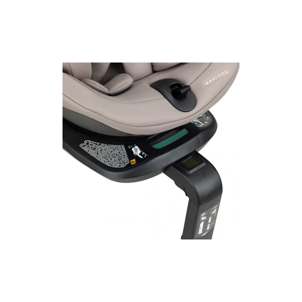 Autosedačka sa do auta pripevňuje s pomocou úchytov Isofix. Podporná noha v prípade nárazu pomáha udržať autosedačku na mieste. Indikátor správnej inštalácie s digitálnym displejom ukazuje správnosť pripevnenia úchytov Isofix a podpornej nohy a uzamknutia otočného systému.
