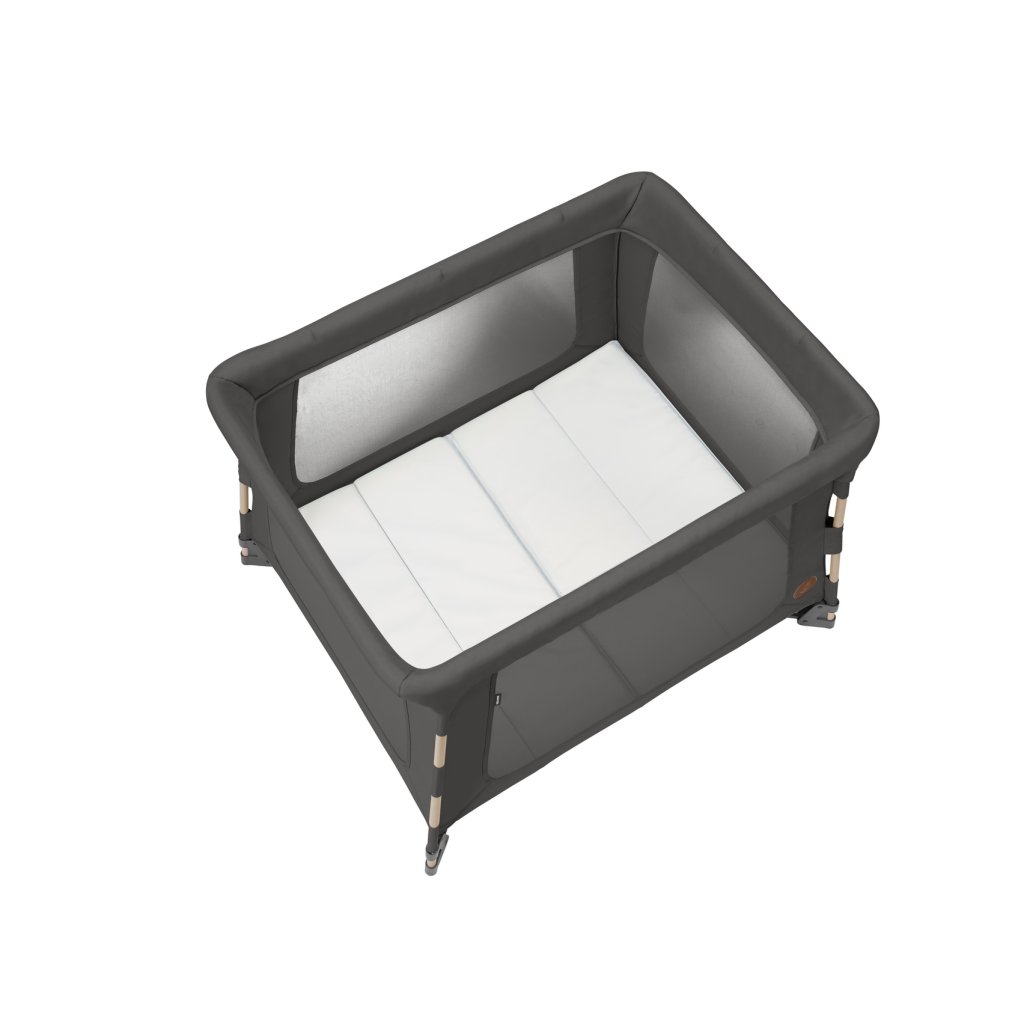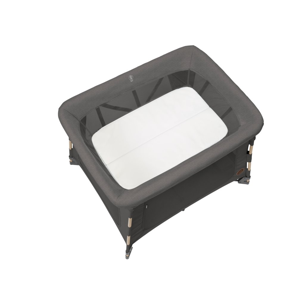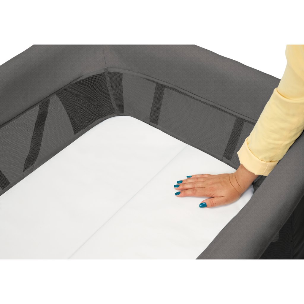 Postieľka je vybavená skladacím dvojdielnym penovým matracom. Pre bábätko od narodenia je určená polovičná veľkosť matraca na vytvorenie útulného prostredia s vyvýšeným dnom. Pre dieťa od cca 6 mesiacov spojíte oba diely matraca zipsom a umiestnite ho na dno postieľky. Pre obe veľkosti matraca je možné dokúpiť samostatne predávané naťahovacie plachty.