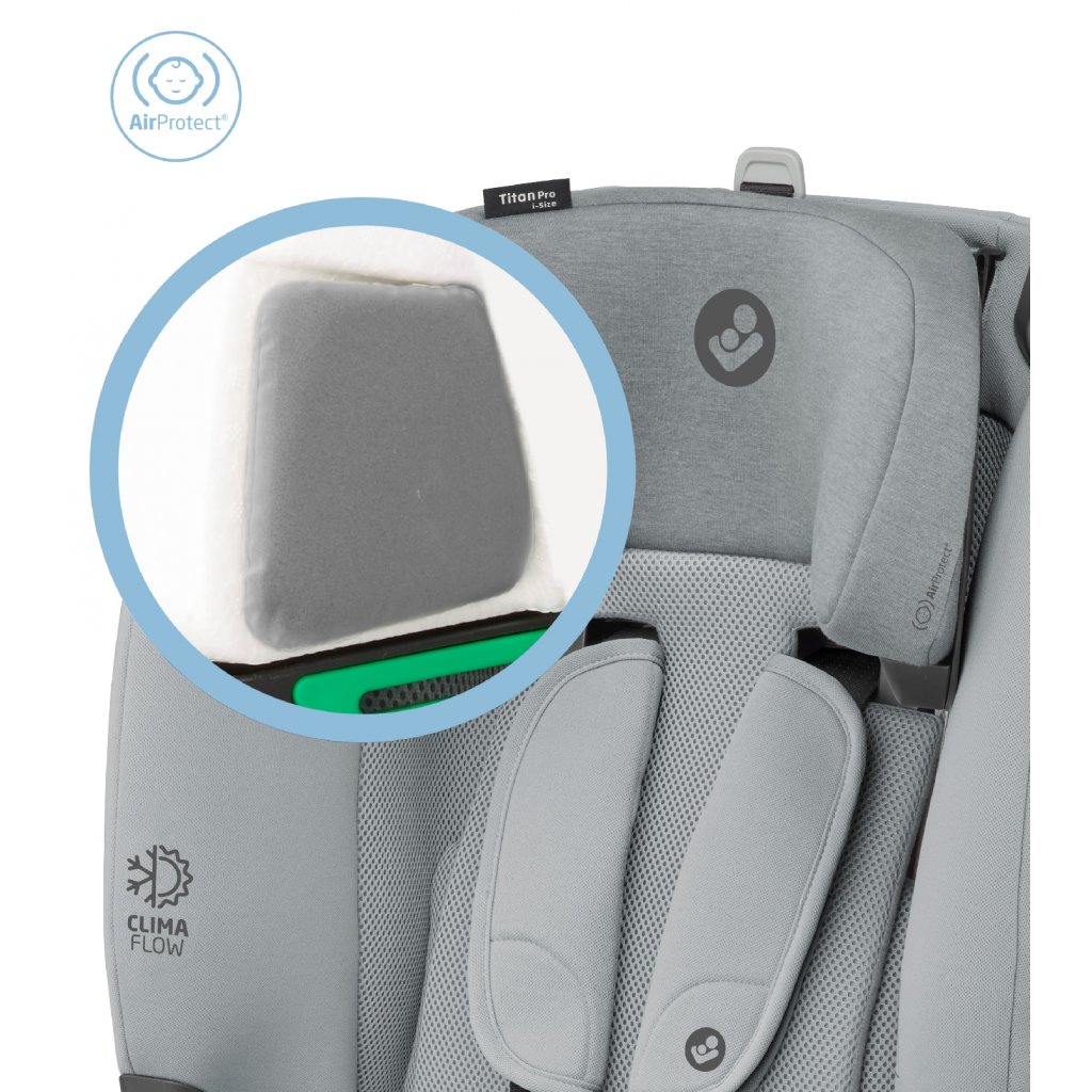 Autosedačka Maxi-Cosi Titan Pro i-Size je multi-veková autosedačka vhodná pre deti od 15 mesiacov do 12 rokov (od 76 do 150 cm). Autosedačka vyniká patentovanou technológiou proti bočnému nárazu, najmä v oblasti ramien a hlavy. Inovatívna plastová štruktúra technológie G-CELL pomáha výrazne znížiť vplyv v prípade bočného nárazu.