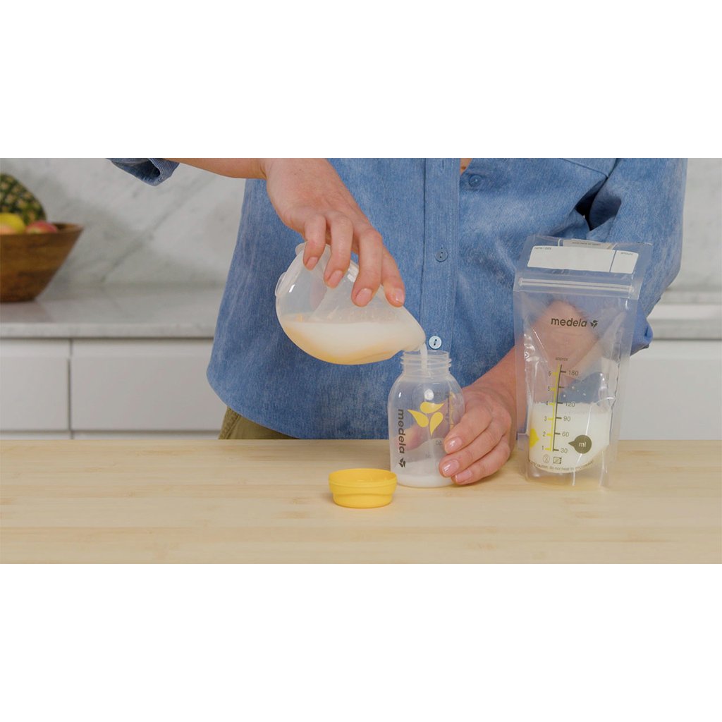 Odsávačka Solo™ Hands-free je dodávaná s jedinečnou zbernou nádobkou Medela, ktorá ponúka: