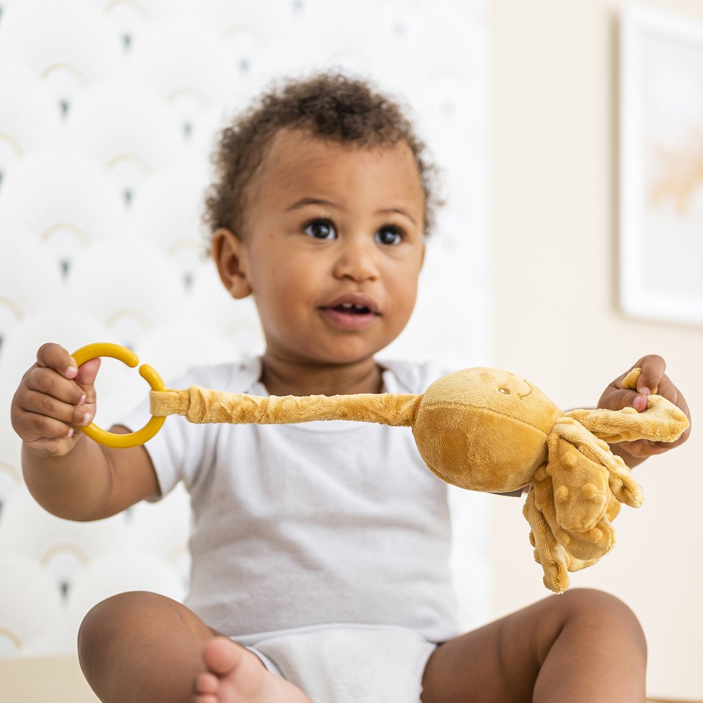 Roztomilá chobotnička, so svojou krásnou srsťou, si podmaňuje srdcia novorodencov po celom svete. Rozkošná chobotnička ponúka nespočetné možnosti uchopenia a podporuje tak rozvoj motoriky. Navyše je tu integrovaná vibračná funkcia, ktorá hravou formou vycibrí hmat a sluchové schopnosti dieťaťa a poskytne dostatok zábavy.